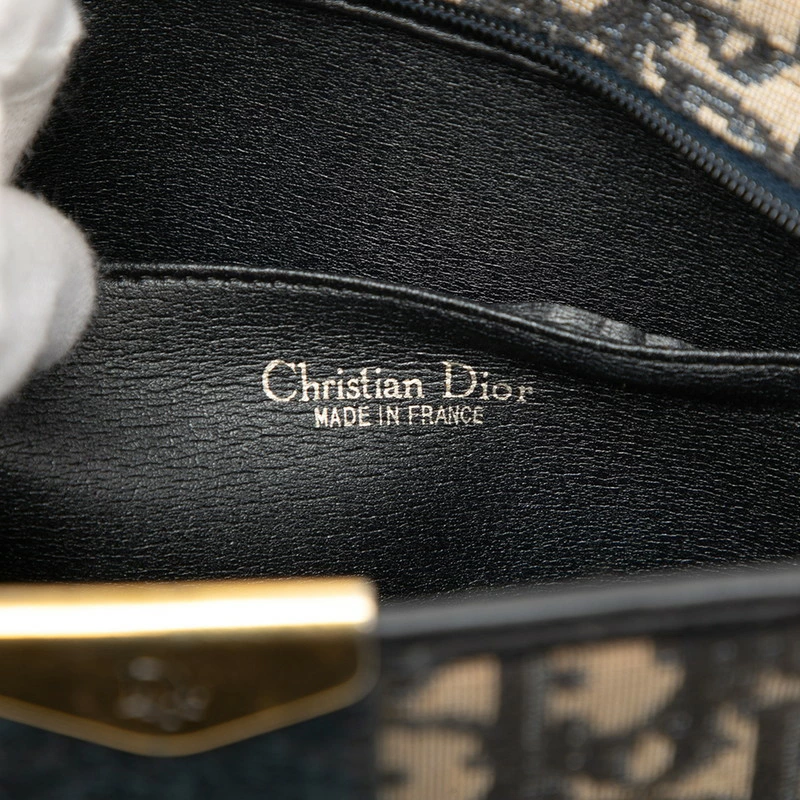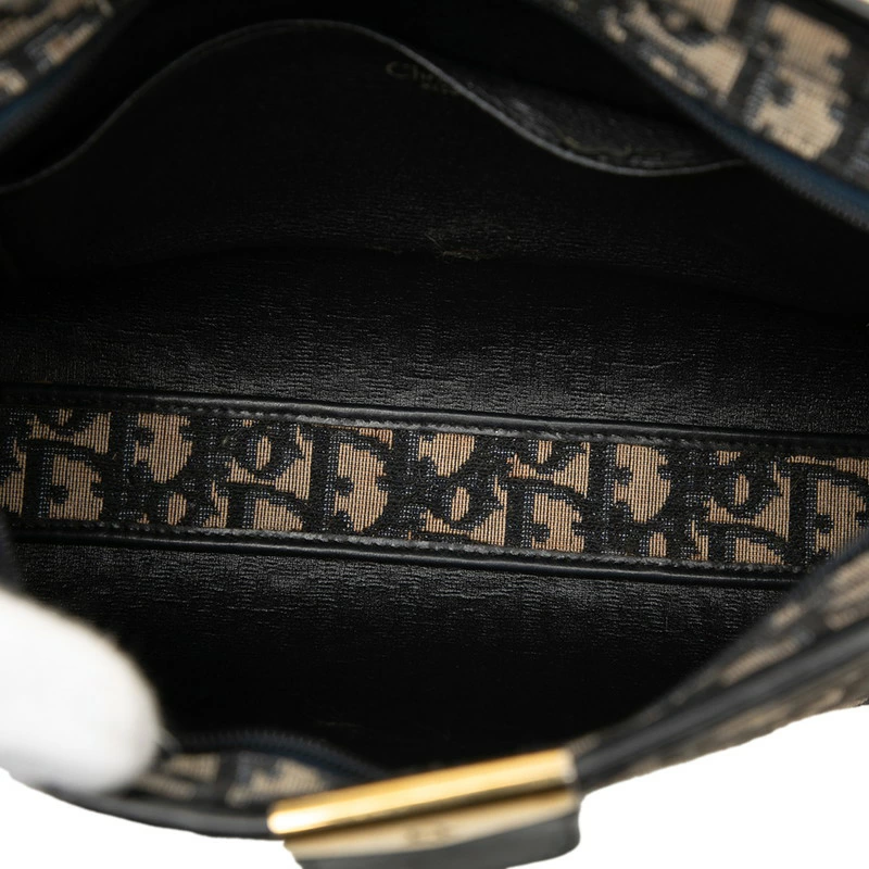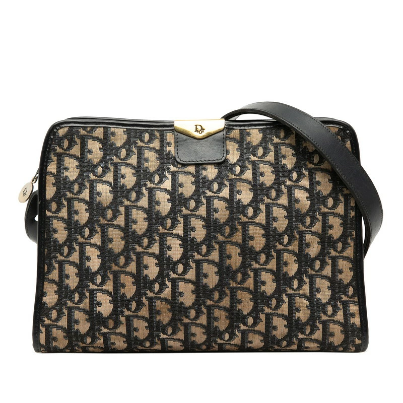- クリスチャンディオール トロッター オブリーク ショルダーバッグ ベージュ ネイビー キャンバス レザー レディース Christian Dior 【中古】