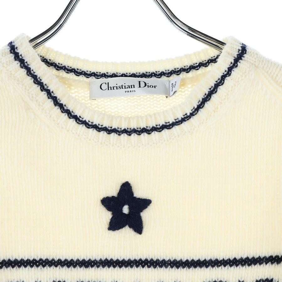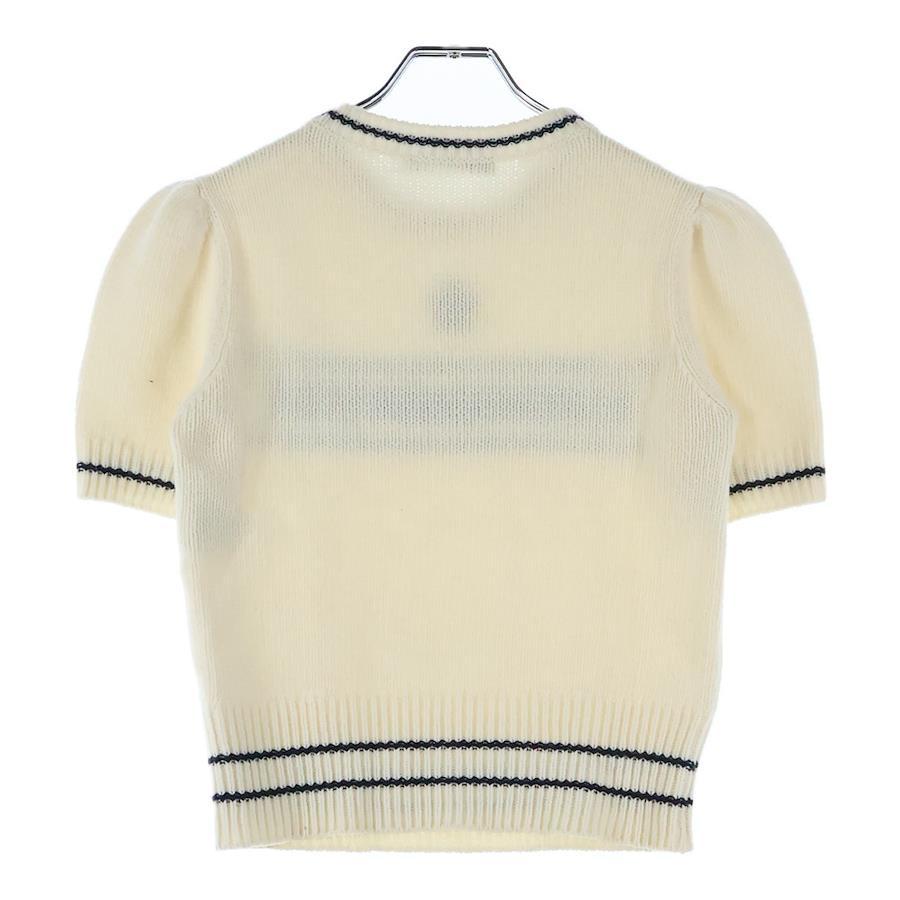 [モデル]21AW フロントロゴ カシミヤ混 ウール ショートスリーブ 半袖 クルーネック ニット セーター アイボリー/ホワイト レディース 154S09AM305