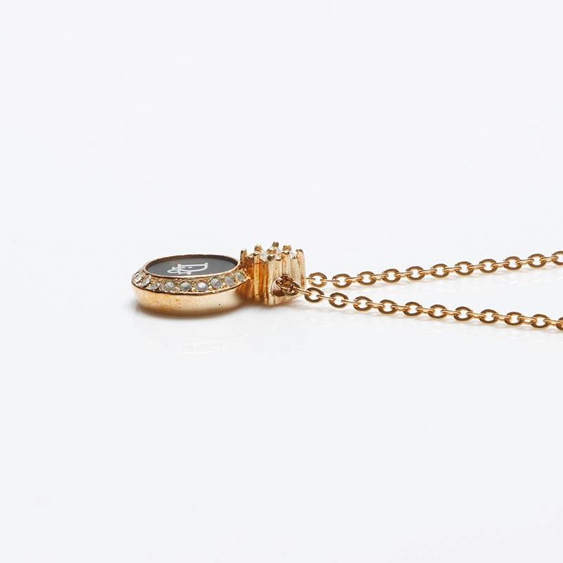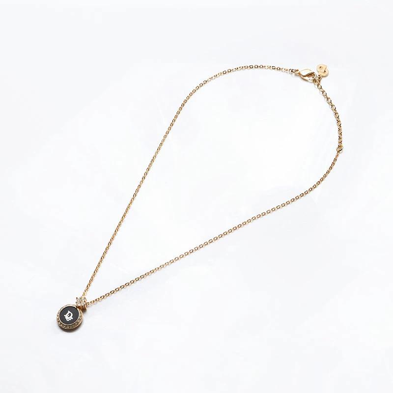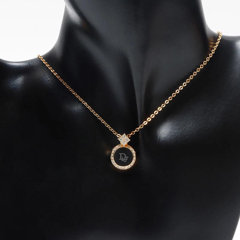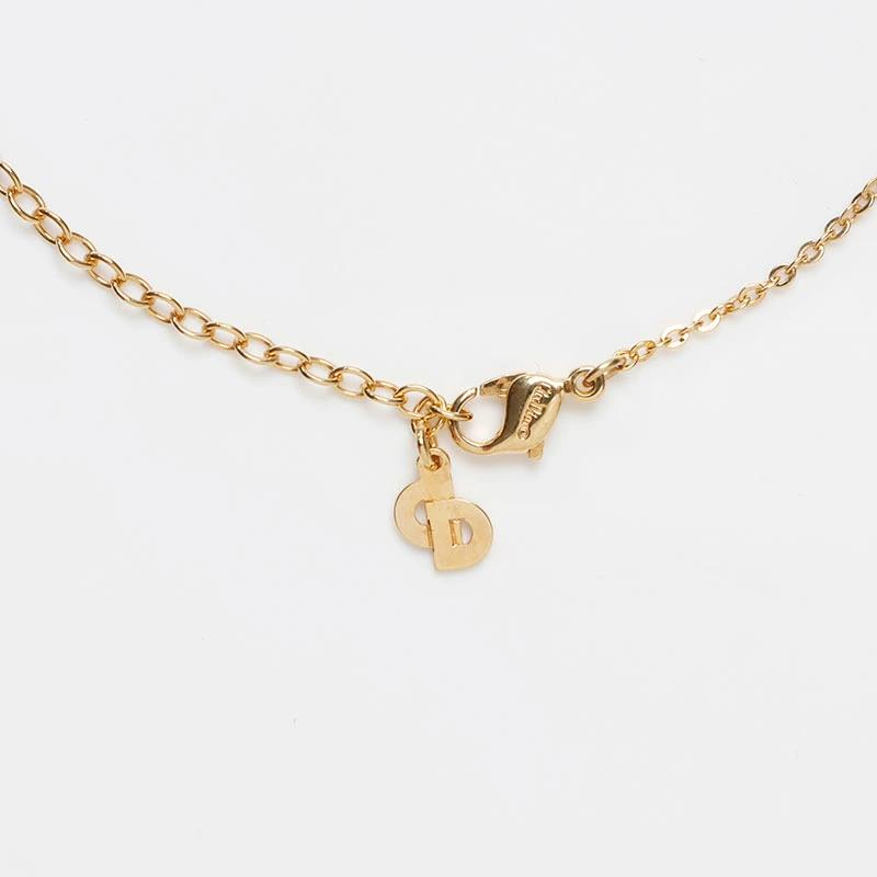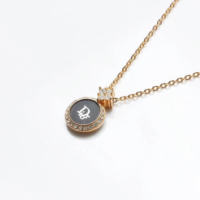Pre-owned Christian Dior logo rhinestone necklace in gold (WS13225)