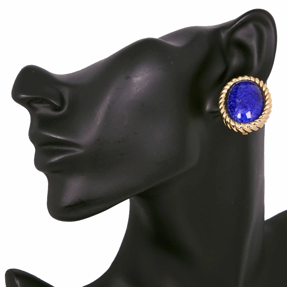 Christian Dior Vintage Gold-Plated Earrings, Made in Germany, Blue, Approx. 35.5g, Women's, Pre-Owned, Rank A