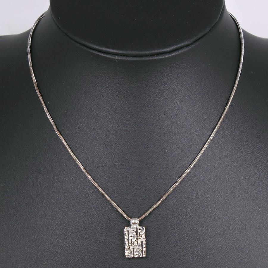 Christian Dior Trotter Necklace, Square Rhinestones, Approx. 8.7g, Women's, Pre-owned, B-Rank