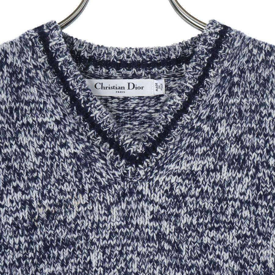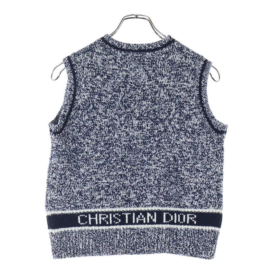 [モデル]Vネック カシミヤ混 ウール バックロゴ ニットベスト ネイビー 054T01AM303