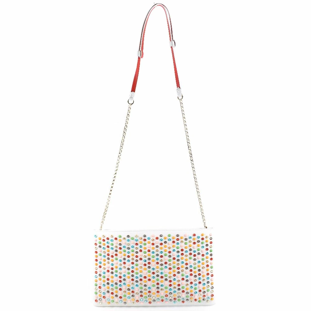 Pre-owned Christian Louboutin Rubiposh Clutch Bag, 2-Way Shoulder Bag with Studs, Calfskin Leather, Zipper Detail, 1175134, Women's, SA Rank