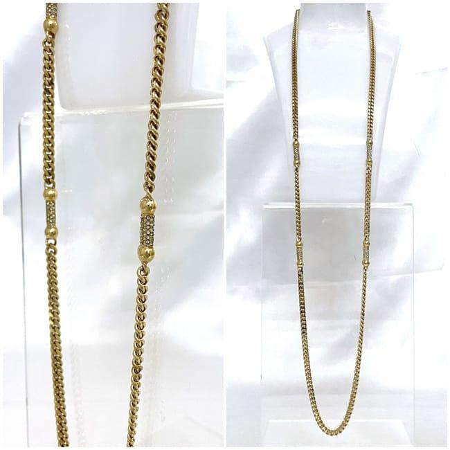 クリスチャン ディオール ロング ネックレス ec-22691 ゴールド 美品 GP ラインストーン 中古 Christian Dior ジュエリー 喜平 チェーン ロングネックレス ストーン 定番 人気 女性 レディース お洒落 シンプル エレガント 小物 高級感 ブランド 本物 鑑定済み