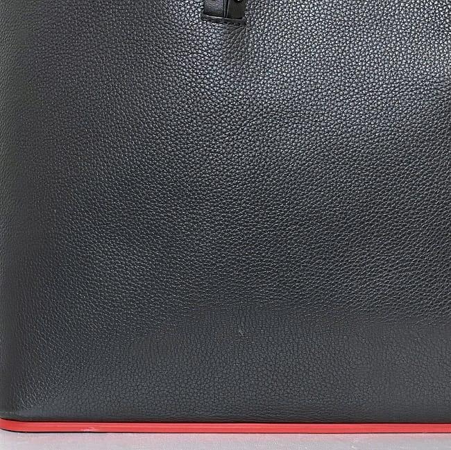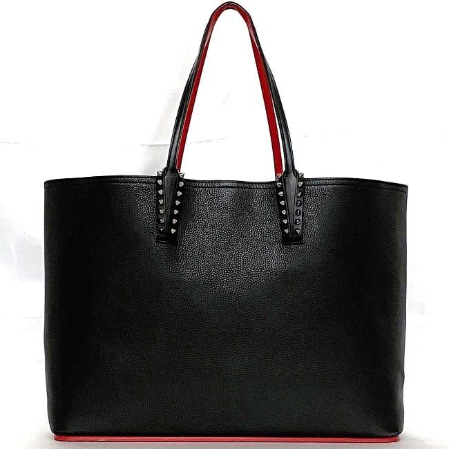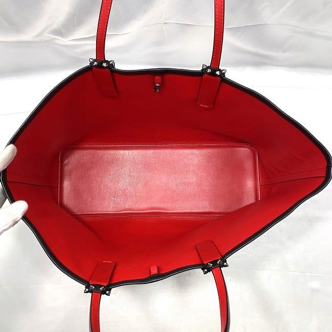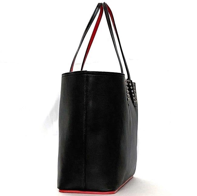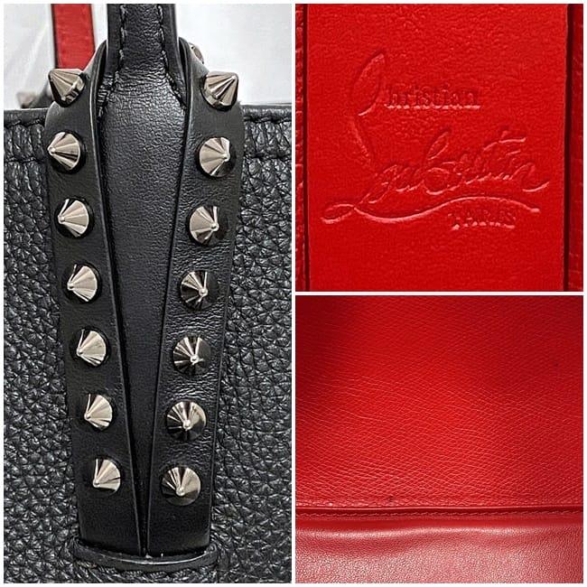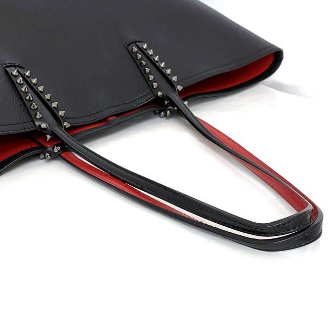 クリスチャン ルブタン トートバッグ f-22623 ブラック レッド カバタ 美品 レザー ラバー 中古 Christian Louboutin 本革 シンプル スタッズ 大容量 ロゴ 書類 肩掛け 自立 a4 人気 定番 お洒落 上品 高級感 エレガント 黒 赤 ブランド 本物 鑑定済み