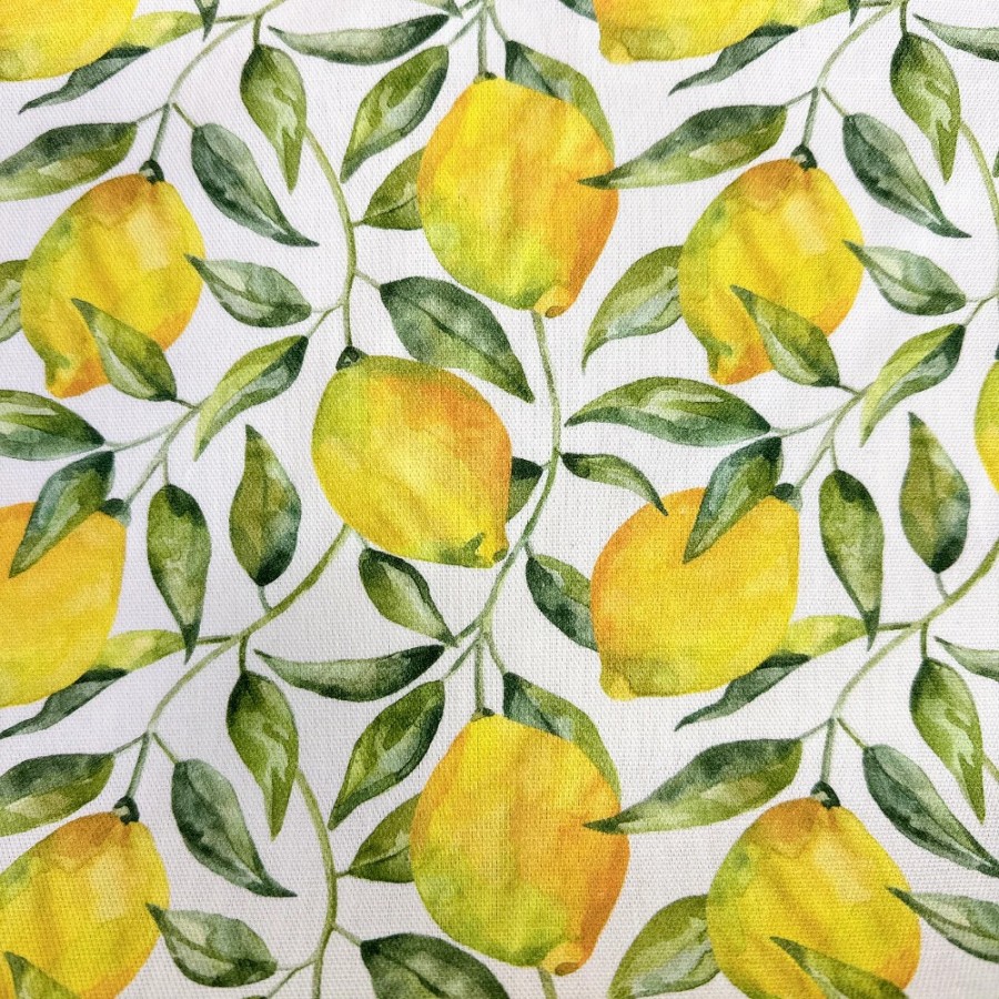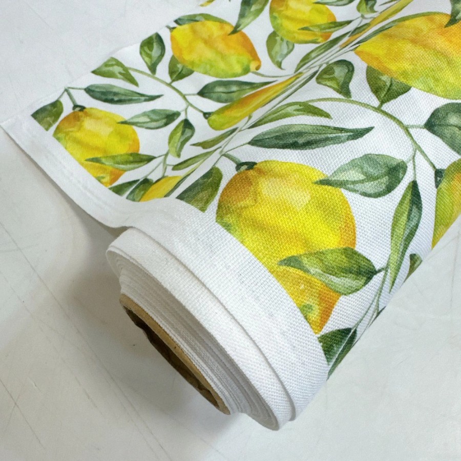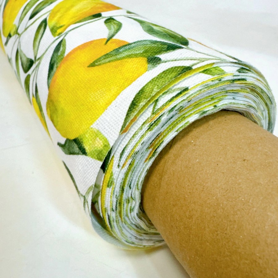 Klippan fabric, 1 roll (approx. 9m), 153cm wide, Lemon Tree pattern, yellow, cotton, Nordic style, suitable for handmade and commercial use. (Item number: 390136)
