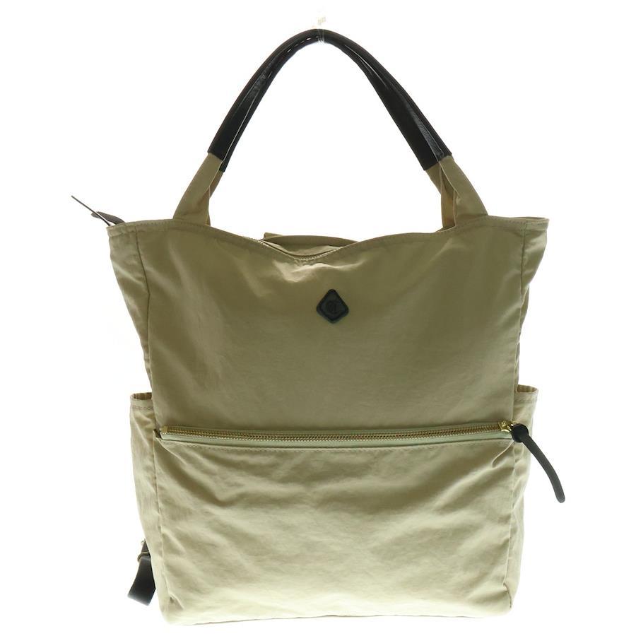 [モデル]2WAYリュックサック ベージュ ナイロン レザー 〇