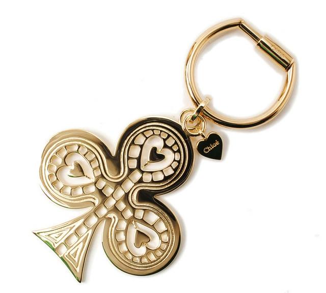 クロエより、クローバーがモチーフのキーリングです。大きなクローバーの中に、小さなハートが隠れており、遊び心あふれる可愛らしいデザインです。着脱しやすいスプリング式の開閉部で、使いやすく機能的です!贈り物にも最適です!