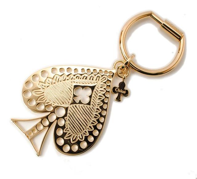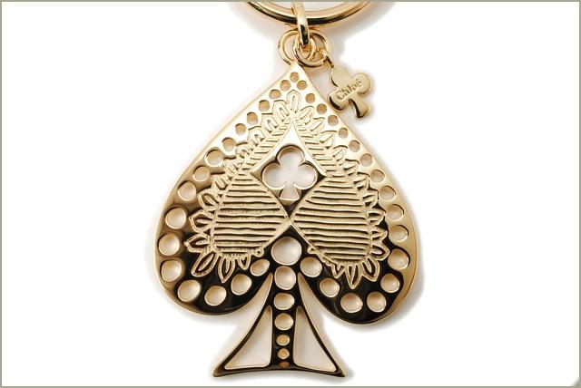 クロエより、スペードがモチーフのキーリングです。大きなスペードの中に、小さなクローバーが隠れており、遊び心あふれる可愛らしいデザインです。着脱しやすいスプリング式の開閉部で、使いやすく機能的です!贈り物にも最適です!