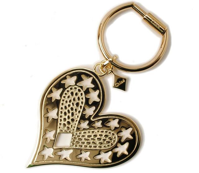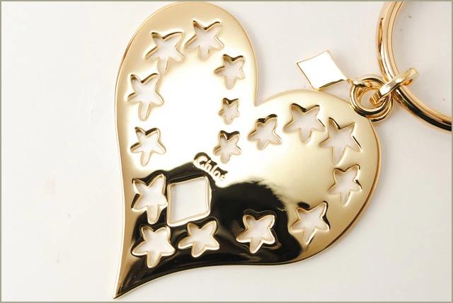 クロエより、ハートがモチーフのキーリングです。大きなハートの中に、小さなクローバー、星が隠れており、遊び心あふれる可愛らしいデザインです。着脱しやすいスプリング式の開閉部で、使いやすく機能的です!贈り物にも最適です!