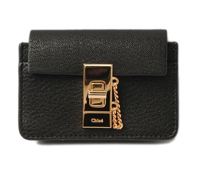 クロエよりドリュー・ラインのコインケース兼用カードケースです。手触りのよいラムスキン素材で高級感があります。ゴージャスなチェーン使いがアクセントになり印象的です。コインとクレジットカードなどを持ち運ぶのに、とっても便利です。