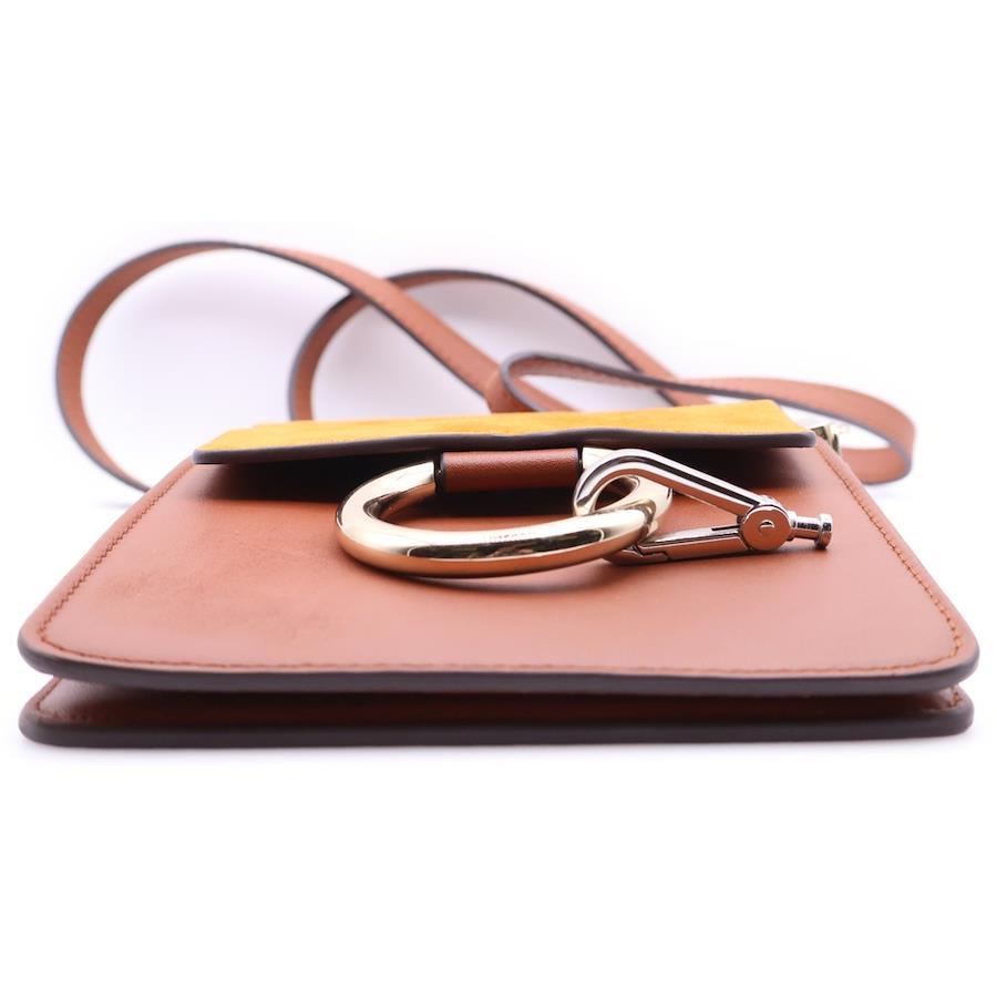 [モデル]ショルダーバッグ フォンショルダーバッグ ミニバッグ ブラウン×オレンジ ゴールド金具 レザー×スエード