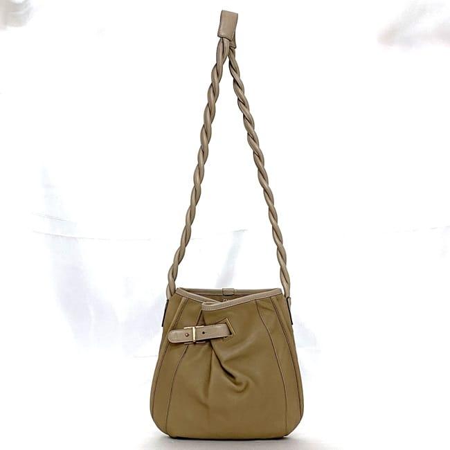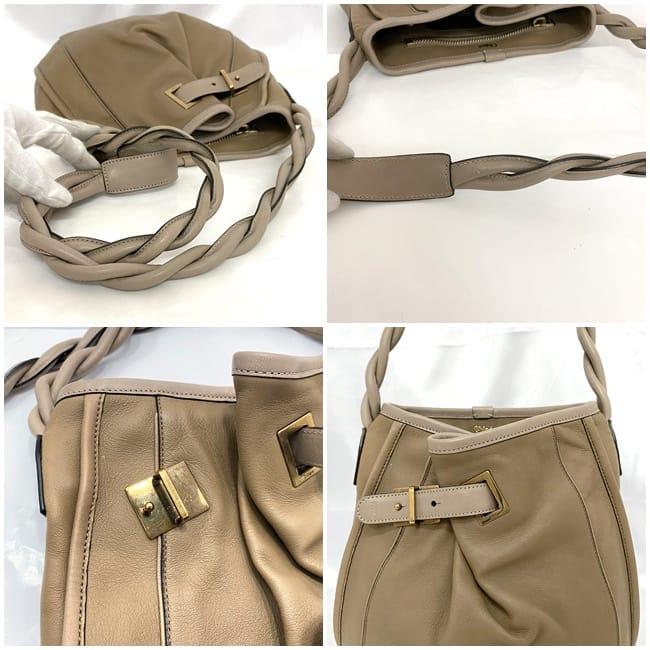 クロエ ショルダーバッグ ec-22665 ベージュ ブラウン 美品 レザー 中古 04-10-51-5811 Chloe クロスボディ 巾着 シンプル 定番 人気 女性 レディース 革 通勤 通学 仕事 ビジネス コンパクト 小さい お洒落 肩掛け エレガント 高級感 ブランド 本物 鑑定済み