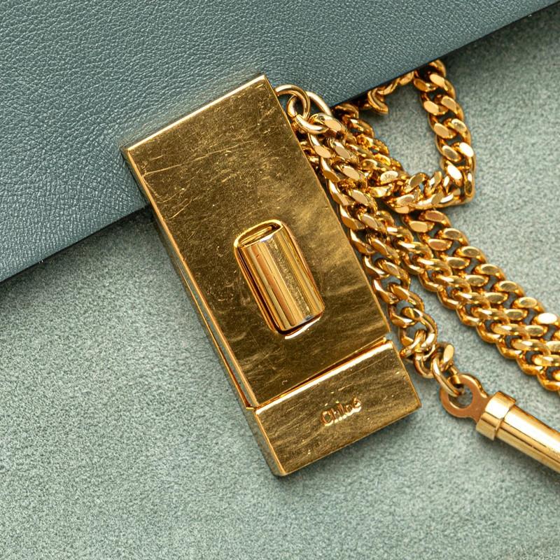 Pre-owned Chloe Drew Chain Shoulder Bag in Blue Leather and Suede.