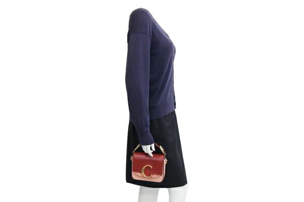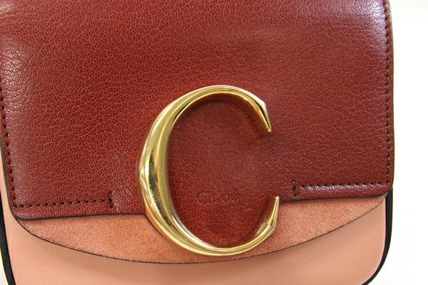 Pre-owned Chloe handbag, Chloe C CHC19AS193B34, brown/pink leather mini bag with one handle and logo. Women's.