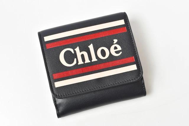 クロエより、VICK/ヴィック・ライン/折財布です。Chloeロゴとストライプがあしらわれたデザインです。コンパクトながら、充実の収納で、財布の中身が多くなりがちな方も、すっきり整頓できます。