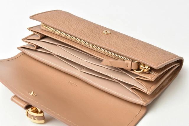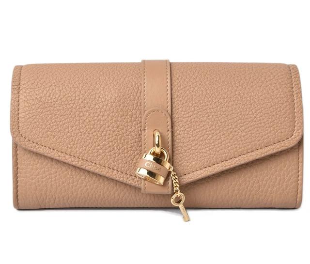 クロエより、ABY/アビーライン、長財布です。高級感のあるシボレザーと滑らかな手触りのスムースレザー。パディントンの流れを引き継いだ、パドロックとキーをモチーフにしたチャームをあしらった個性的なデザイン。
