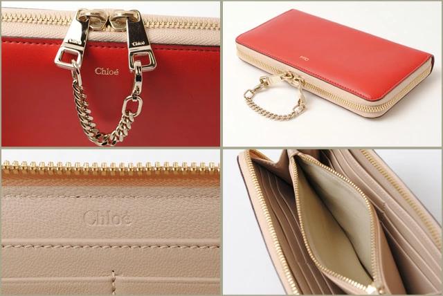 Chloe 長財布 ファスナー式 Baylee/ベイリー パプリカレッド/ベージュ 3P0266-889