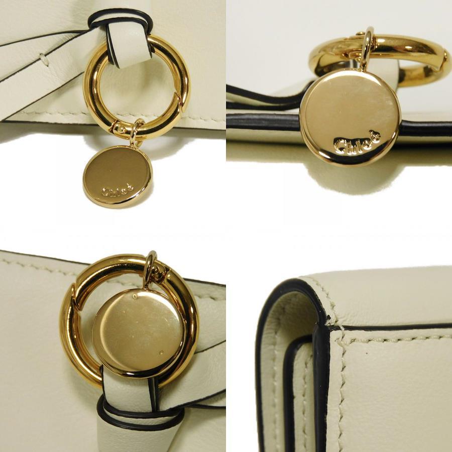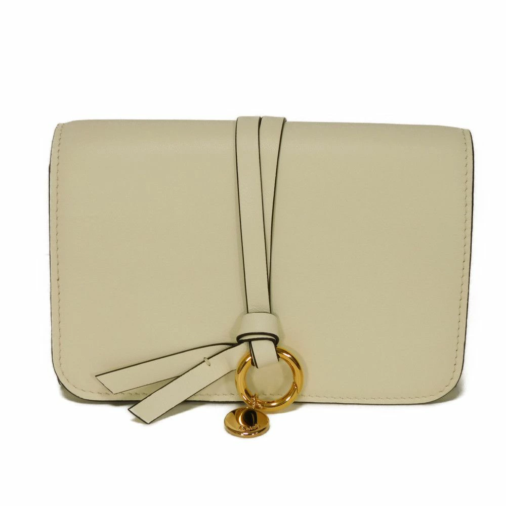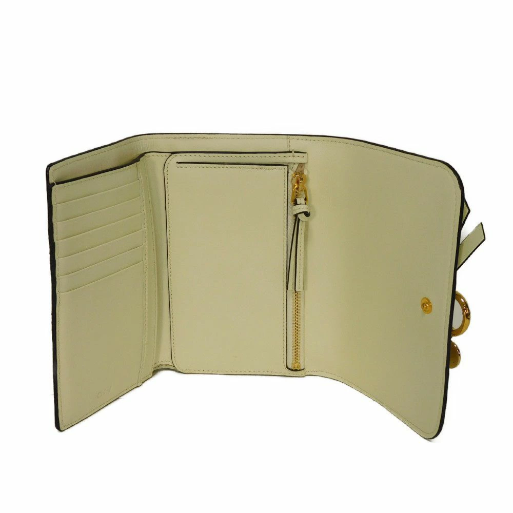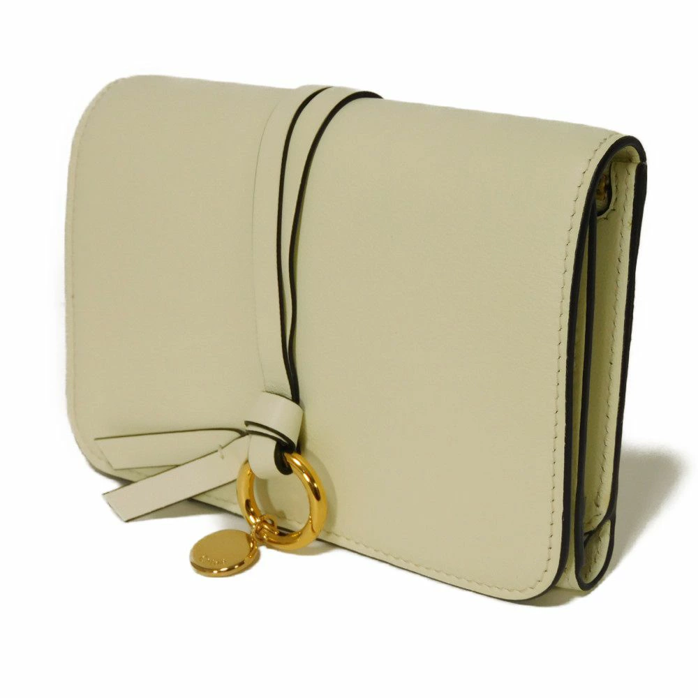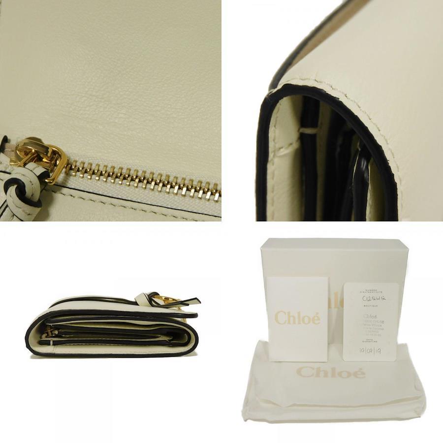 Chloe Alphabet Compact Trifold Wallet in Smooth Calfskin with Logo Charm, White (CHC16AP709). Women's wallet with bill compartment. Elegant, high-quality, sophisticated, and sophisticated. [Pre-owned]