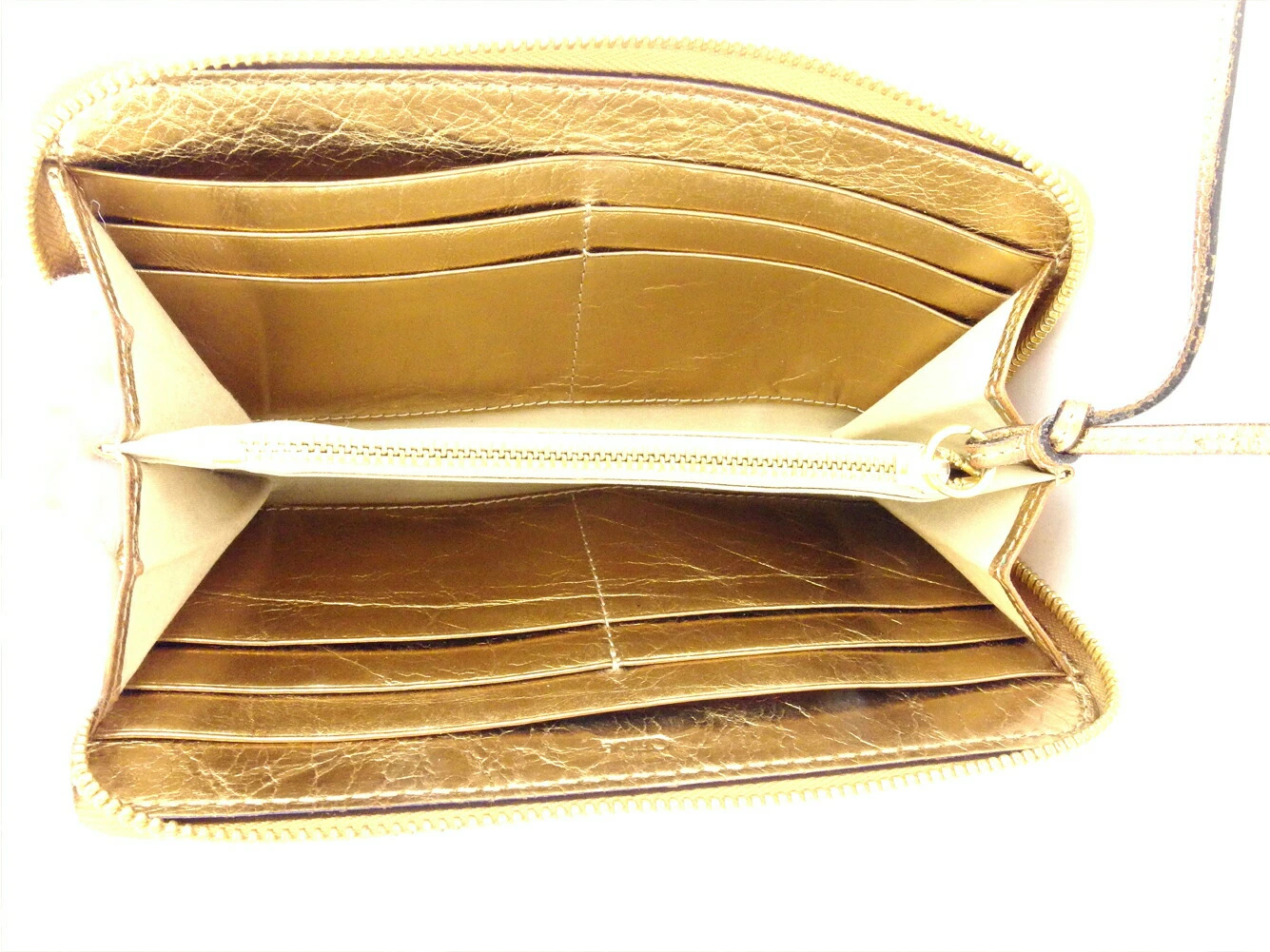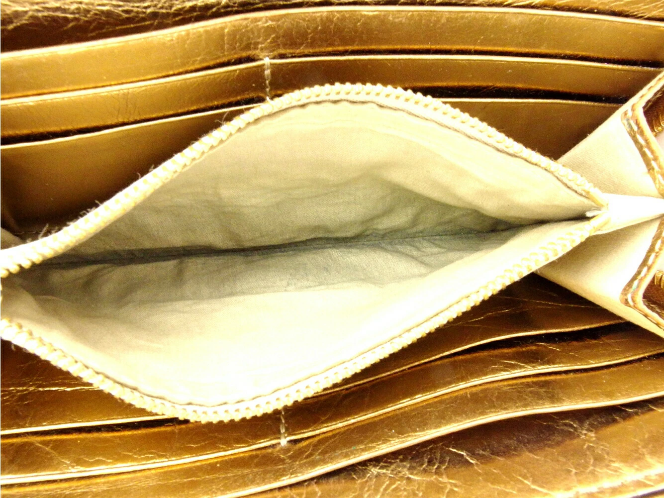 | コンディション | 全体の状態詳細:まだまだお使いいただけます。 社外リペア跡(スレ色着色)。小銭入れに、スレ&黒ずみあり。その他 スレ&汚れ(内側&札入れ&カード入れ&ポケットもあり) 角スレ 金具傷・ハゲ コバヒビ割れ(ファスナープル革×2) ファスナー重め(内側) ラメハガレ小(使用注意) など使用感があります。 |