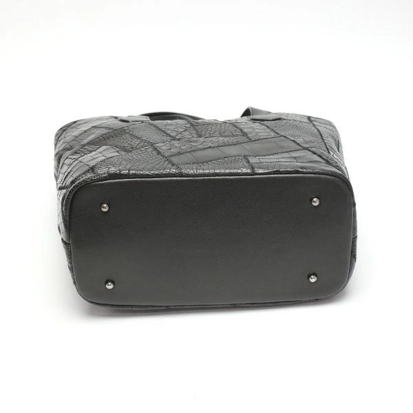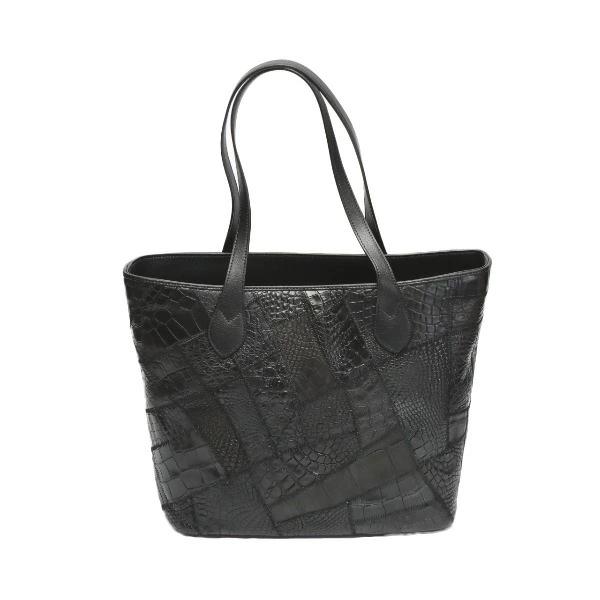 | トートバッグCROCODILE ショルダーバッグパッチワーク 天ファスナーレディース LB-7001ブラック |
