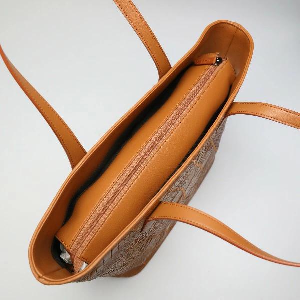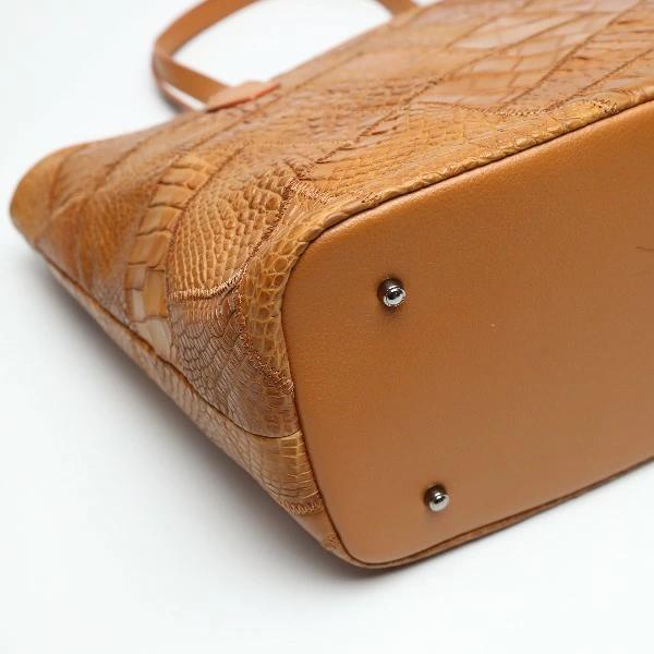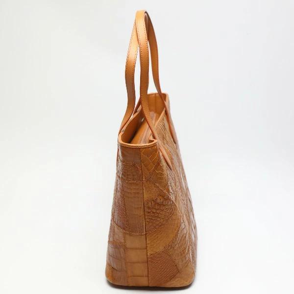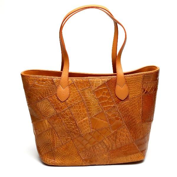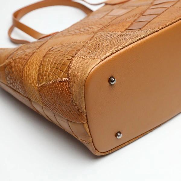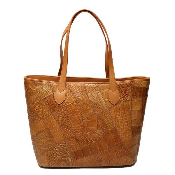 | トートバッグCROCODILE トートバッグ パッチワーク 天ファスナーレディース LB-7001ブラウン |