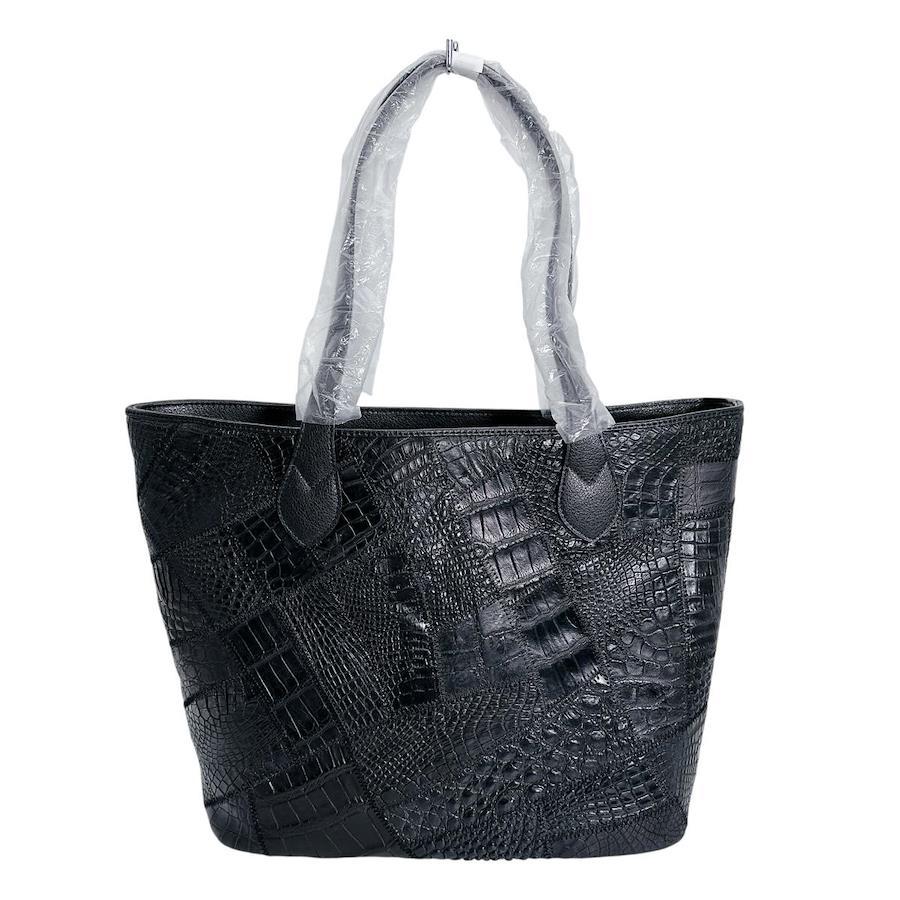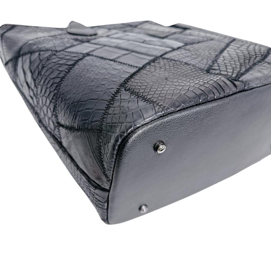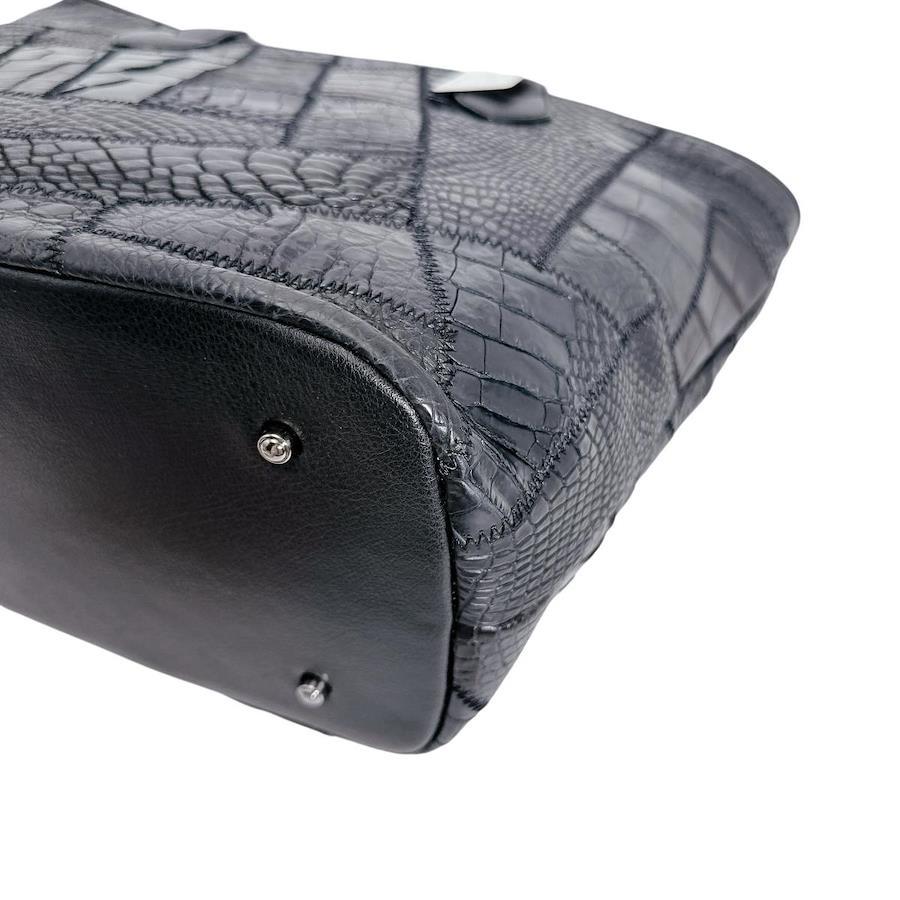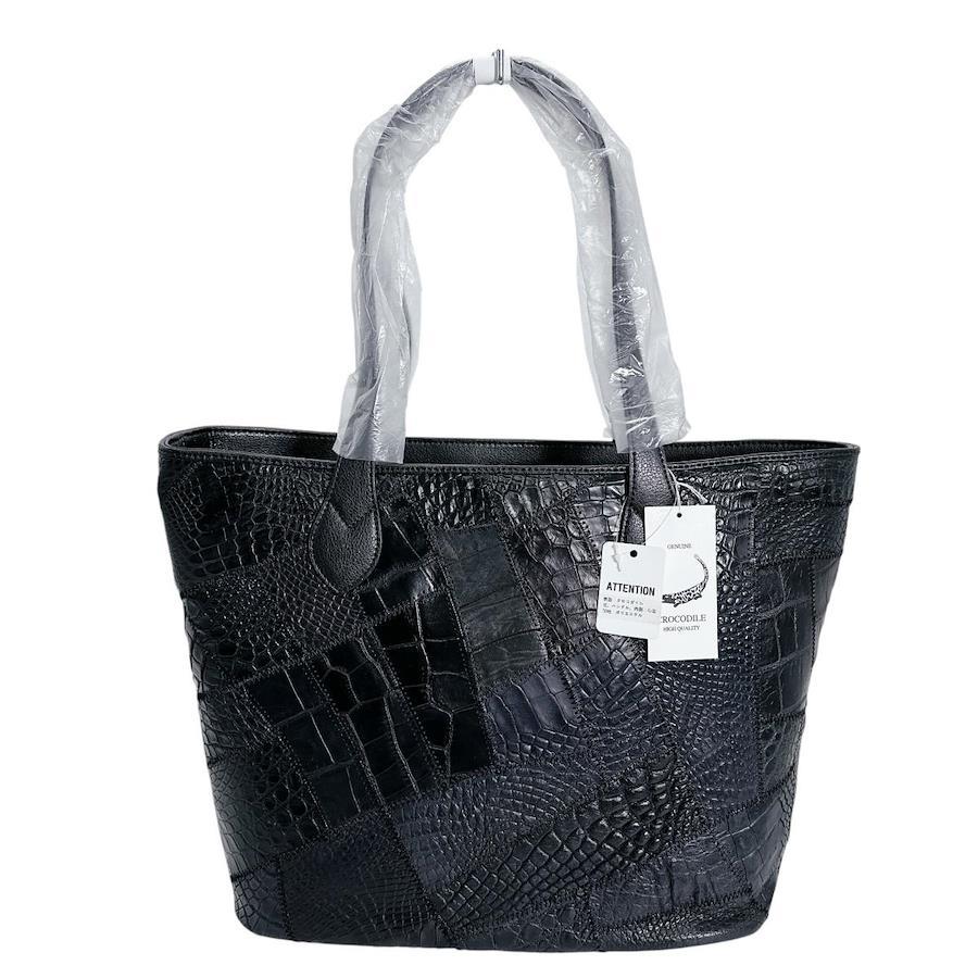 | トートバッグCROCODILE トートバッグパッチワーク 天ファスナーレディース LB-7001BLACKMブラック |