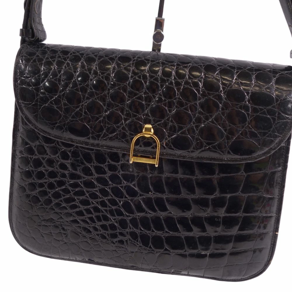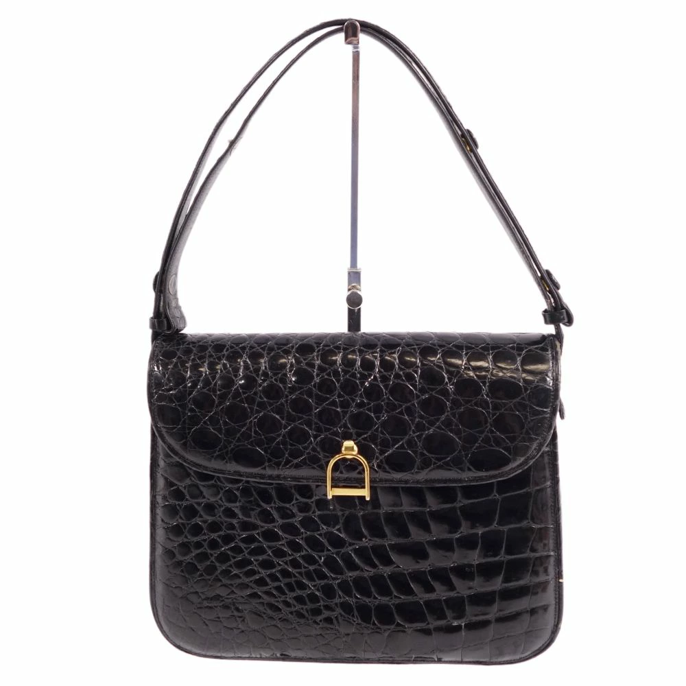 CROCODILE Bag Shoulder Bag Crocodile Alligator Leather Bag Women's Black [Used]