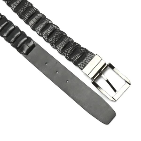 クロコダイル CROCODILE ベルト ピンタイプバックル 編み込み長さ調整可能 ニッケル 35mm クロコダイル LJ-BG メタリック 【H】