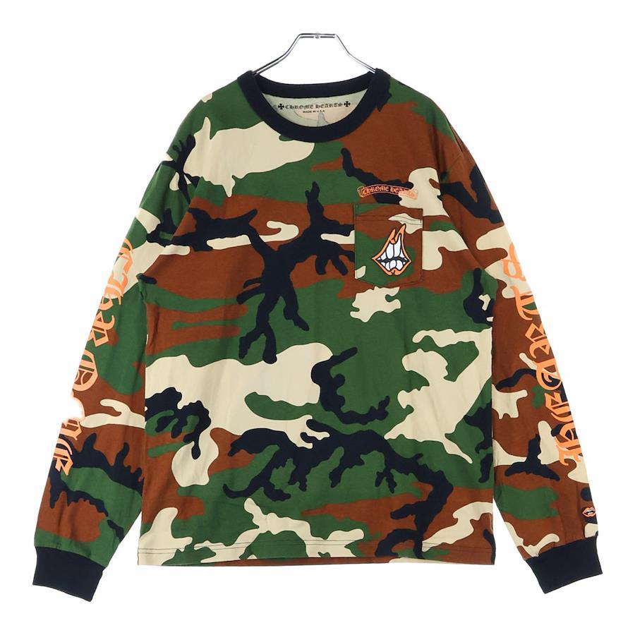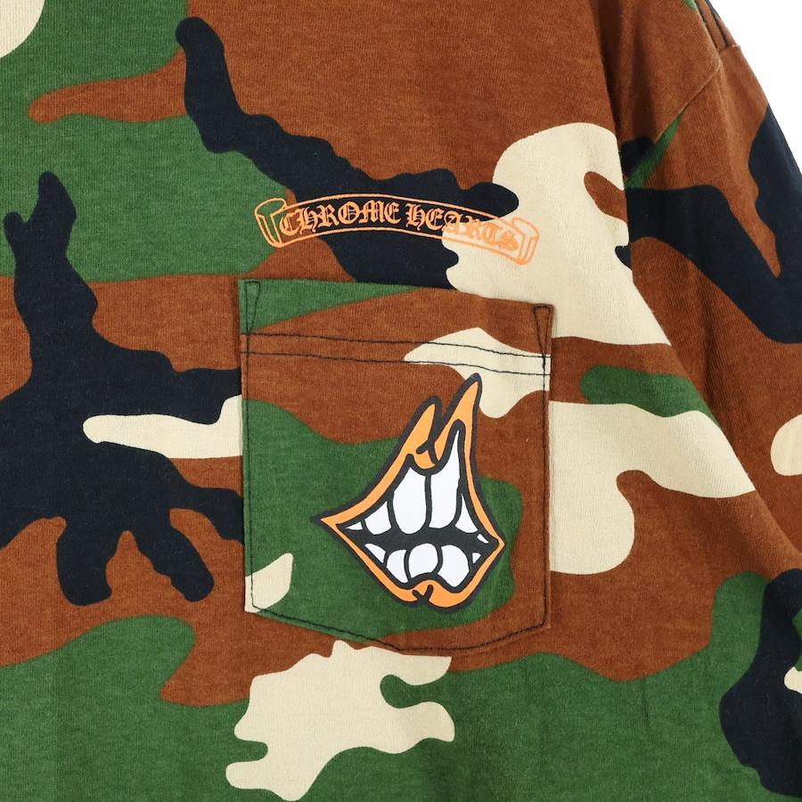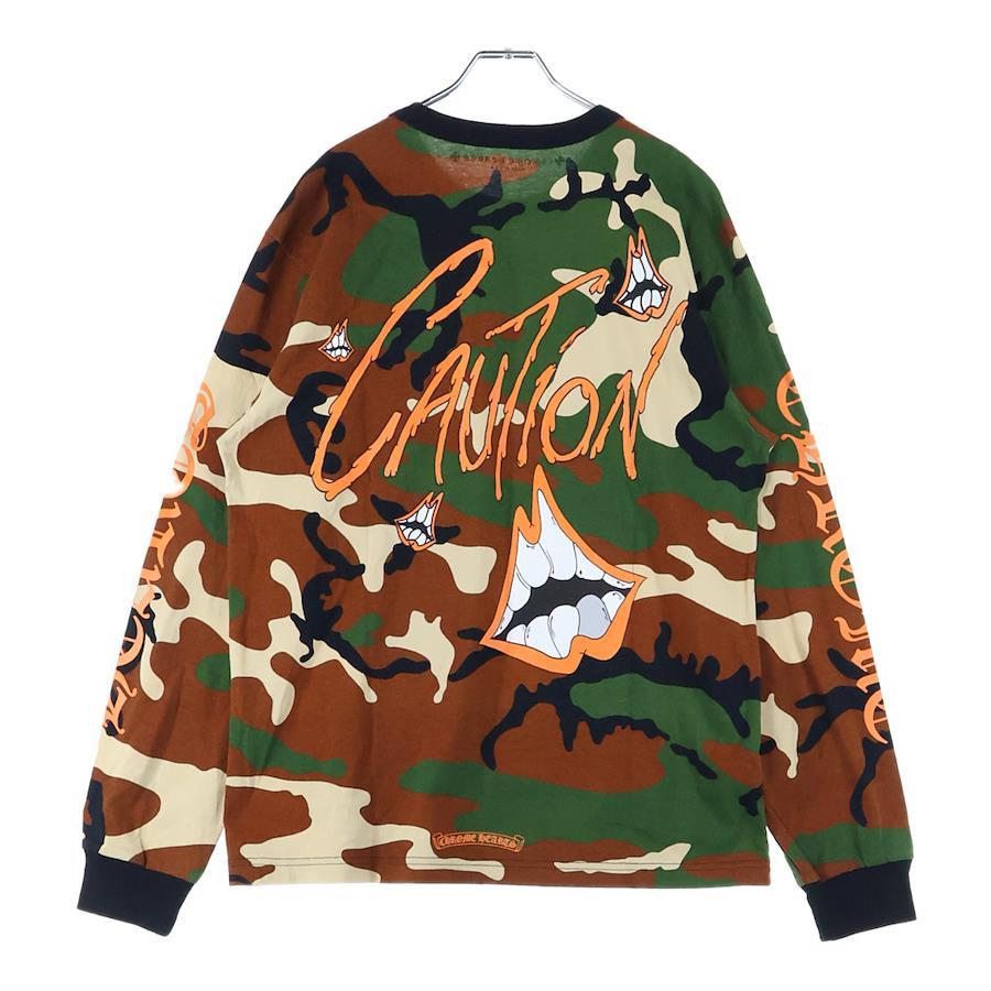 Chrome Hearts x Matty Boy Pro Caution T-Shirt, Matty Boy logo print, camouflage crew neck, long sleeve T-shirt, green/brown, size XL.