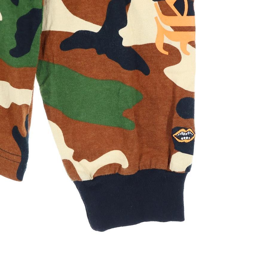 [モデル]×MATTY BOY PRO CAUTION T SHIRT マッティボーイ ロゴプリント カモフラ クルーネック 長袖Tシャツ ロンT カットソー グリーン/ブラウン