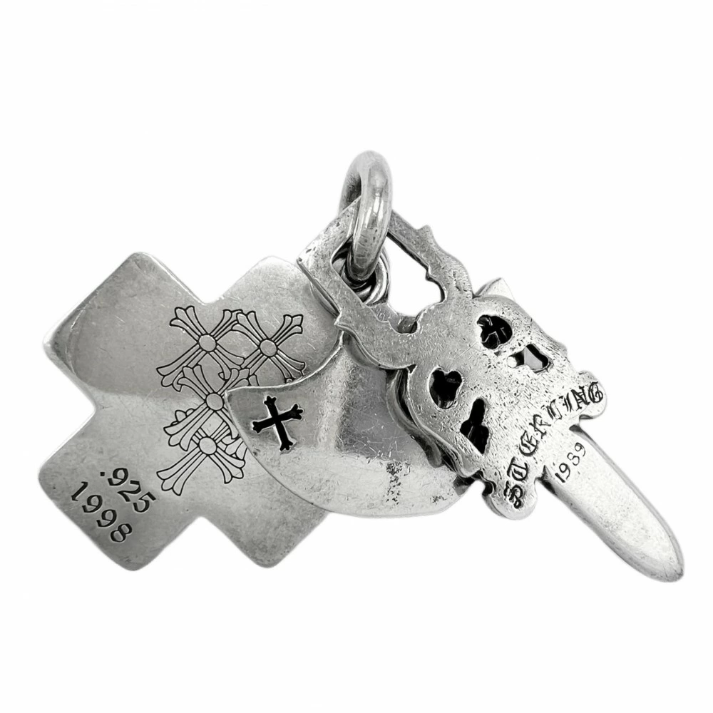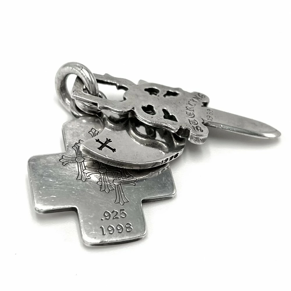Pre-owned Chrome Hearts Men's Dagger Pendant with Three Trinkets, 925 Sterling Silver, Approx. 23.8g