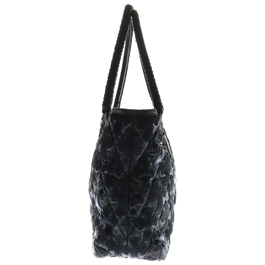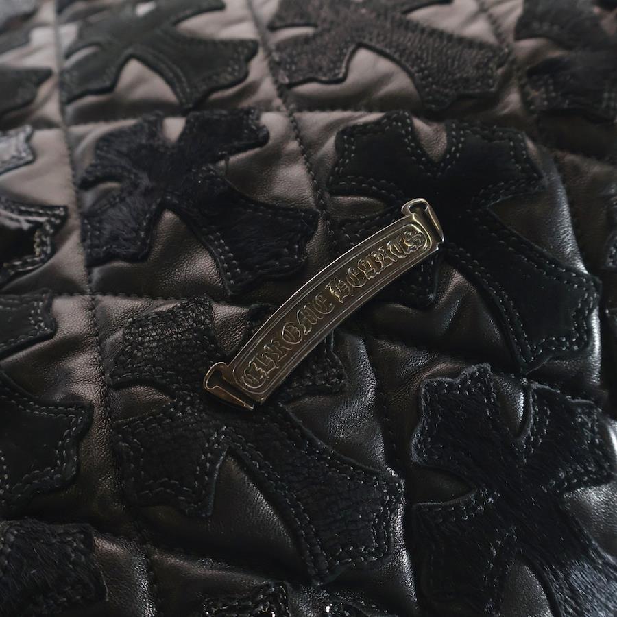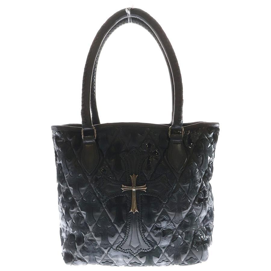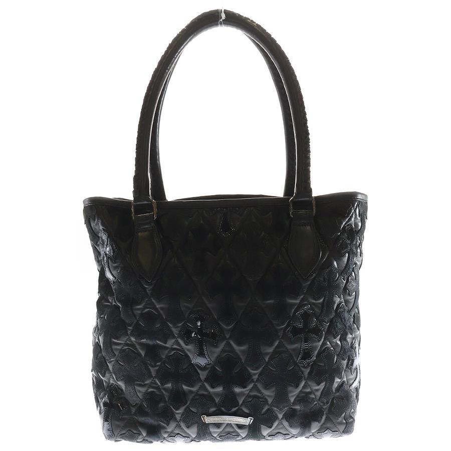 [モデル]ラージクロスセメタリークロスパッチ付きレザートートバッグ ブラック