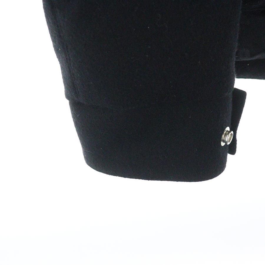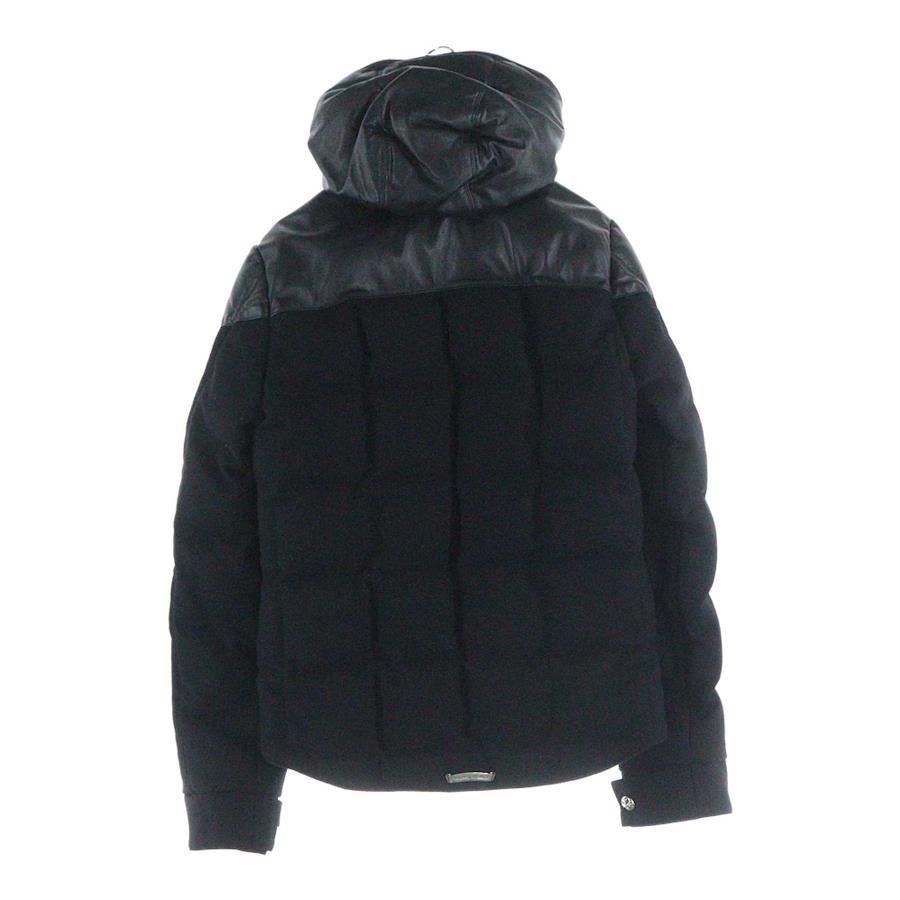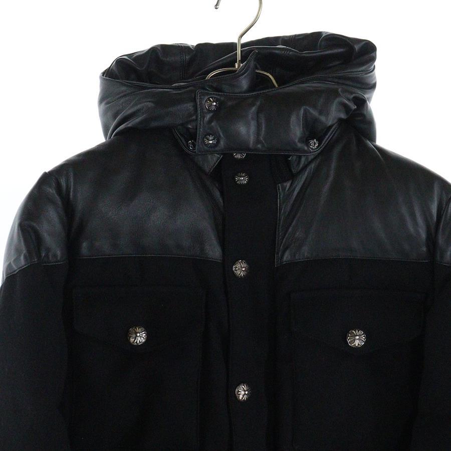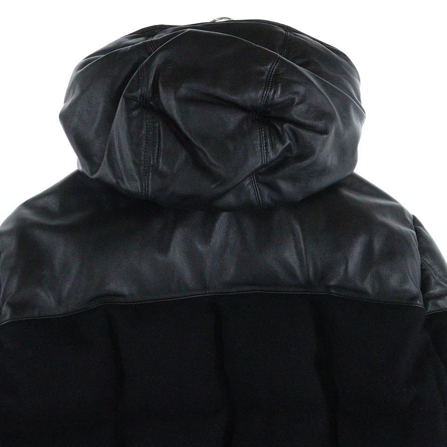 [モデル]レザーカシミア切替 クロスボールボタン フード付き ジャケット ブラック
