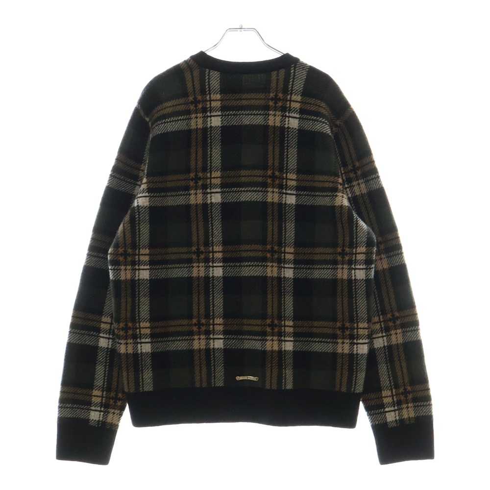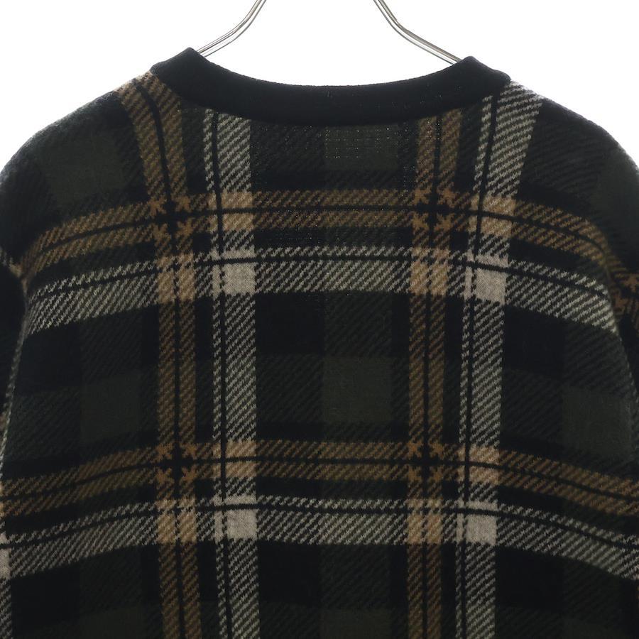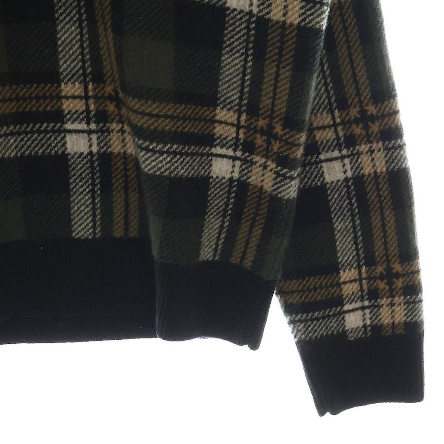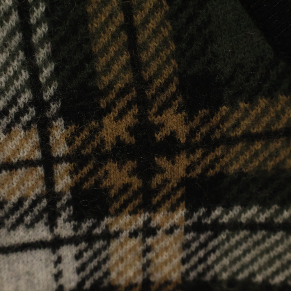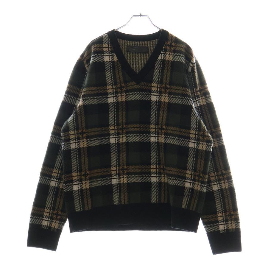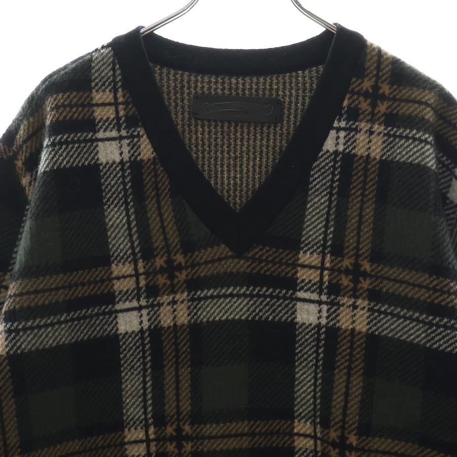 [モデル]BIG CITY V NECK チェック柄カシミヤブレンドVネックニットセーター グリーン/ブラック