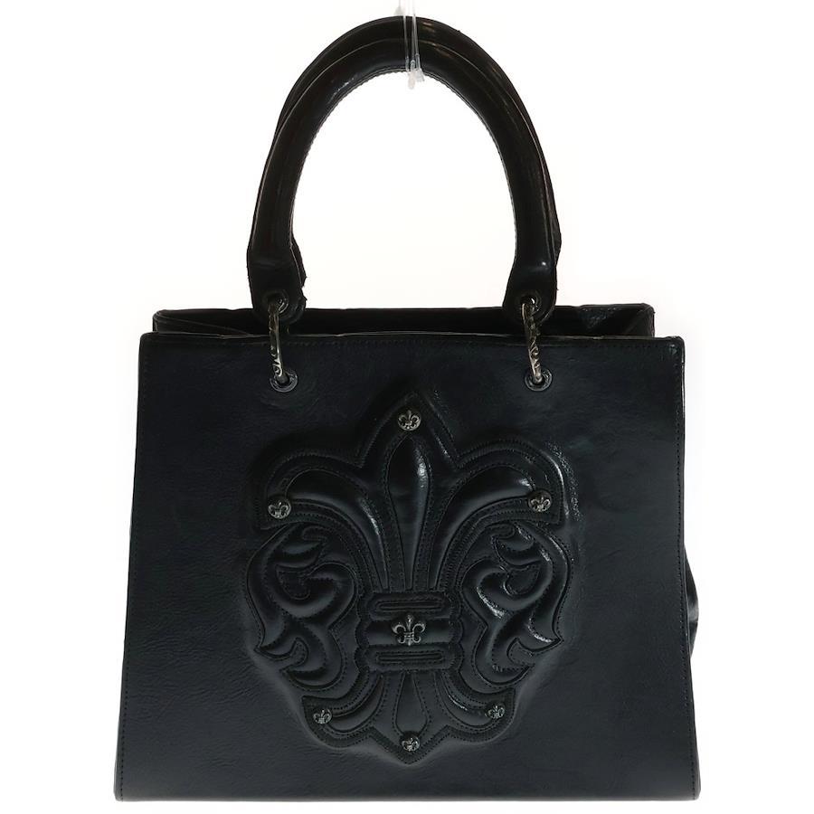 [モデル]BSフレアモチーフ スクロールバンドレザーハンドバッグ ブラック