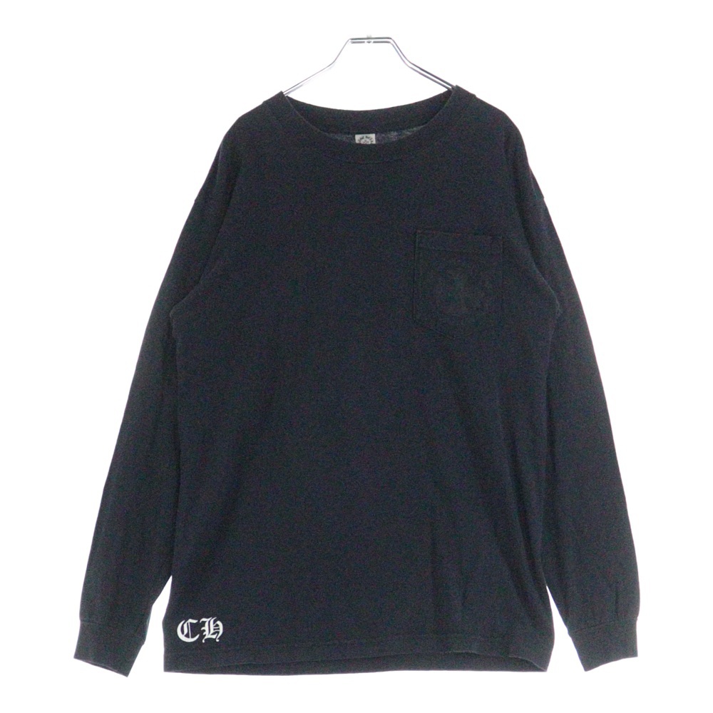 [モデル]CH PLUS フロントCHプラスプリント クルーネック 長袖Tシャツ ブラック
