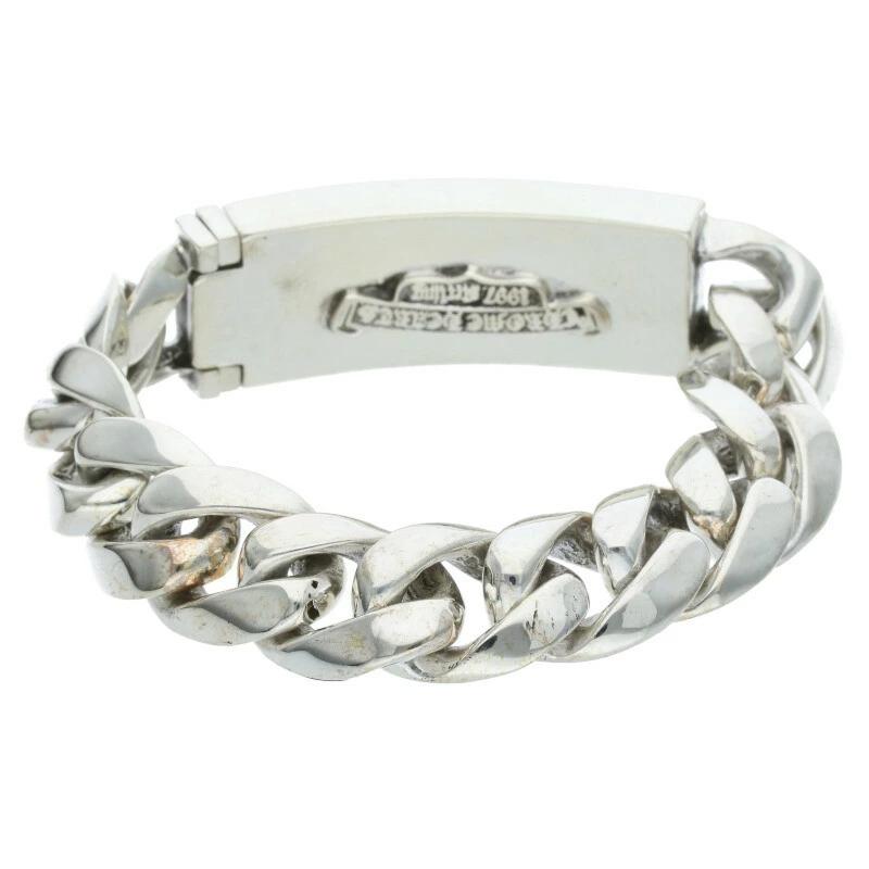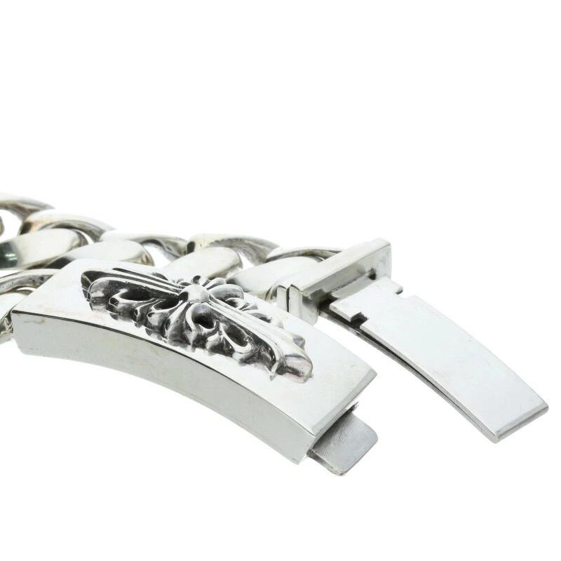 Chrome Hearts LINK ID FLORAL CRS Floral Cross ID Classic Silver Bracelet (Silver, 114.03g) Size: 11 [Product Code: 608052] [OS06] [Accessories] [Pre-owned] bb410#rinkan*B