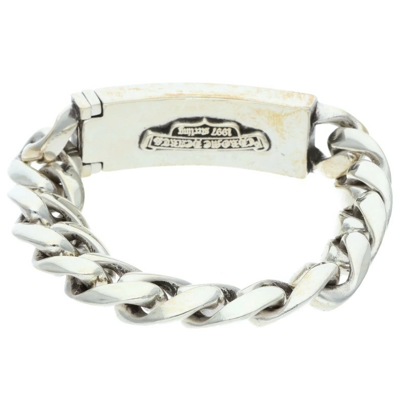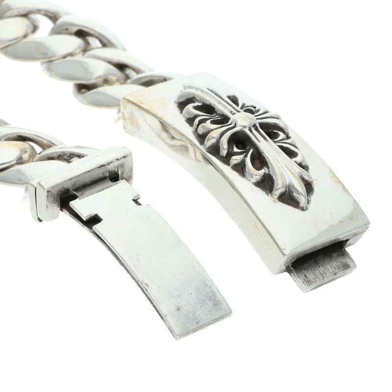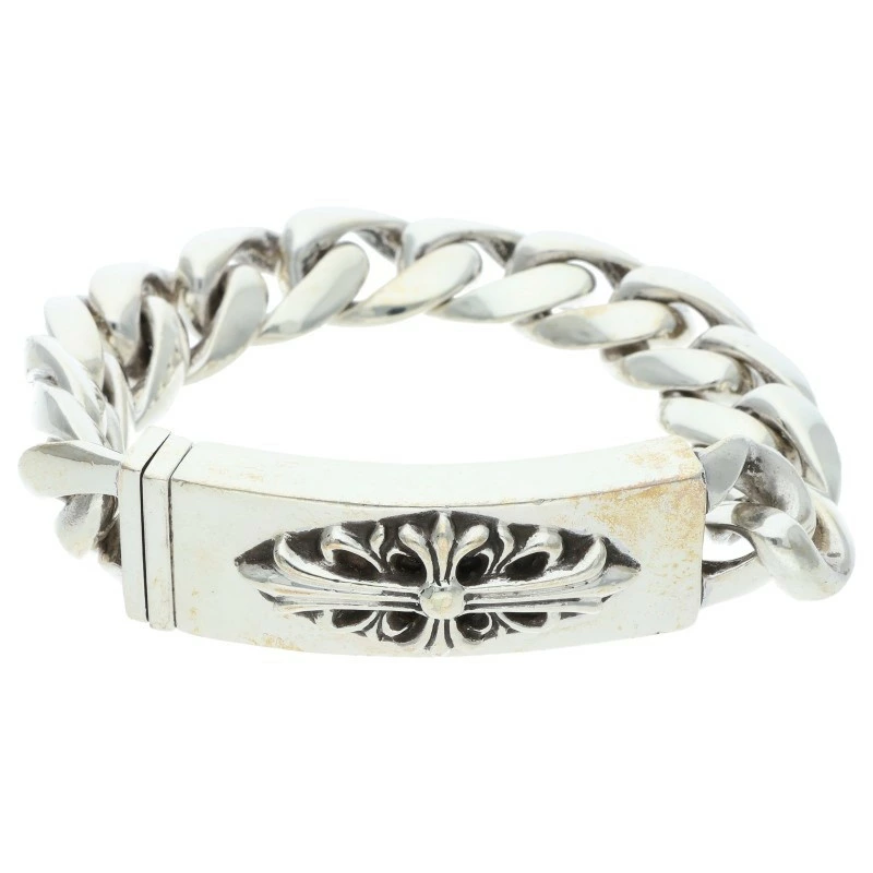 Chrome Hearts <br>Size: 12LINK ID FLORAL CRS Floral Cross ID Classic Silver Bracelet (Silver 114.58g) [914062] [SS07] [Accessories] [Used] bb377#rinkan*B