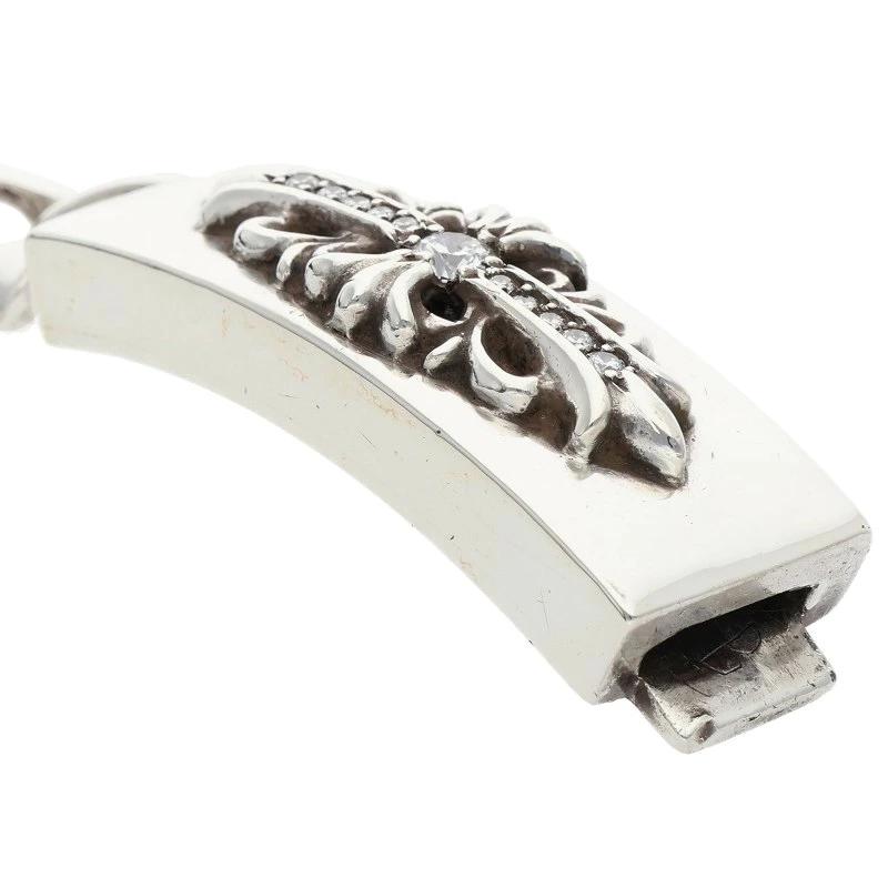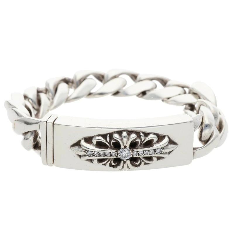 Chrome Hearts Floral ID Classic Link with Pave Diamonds, Silver Bracelet (Silver and Clear, 109g), Size: 12, 709052, Pre-owned, BB406#rinkan*B