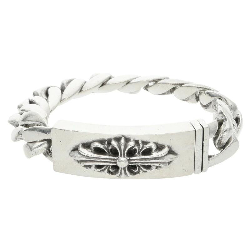 Chrome Hearts LINK ID FLORAL CRS Floral Cross ID Classic Silver Bracelet (Silver, 121.97g) Size: 13 [Product Code: 302052] [NO05] [Accessories] [Pre-owned] bb297#rinkan*B