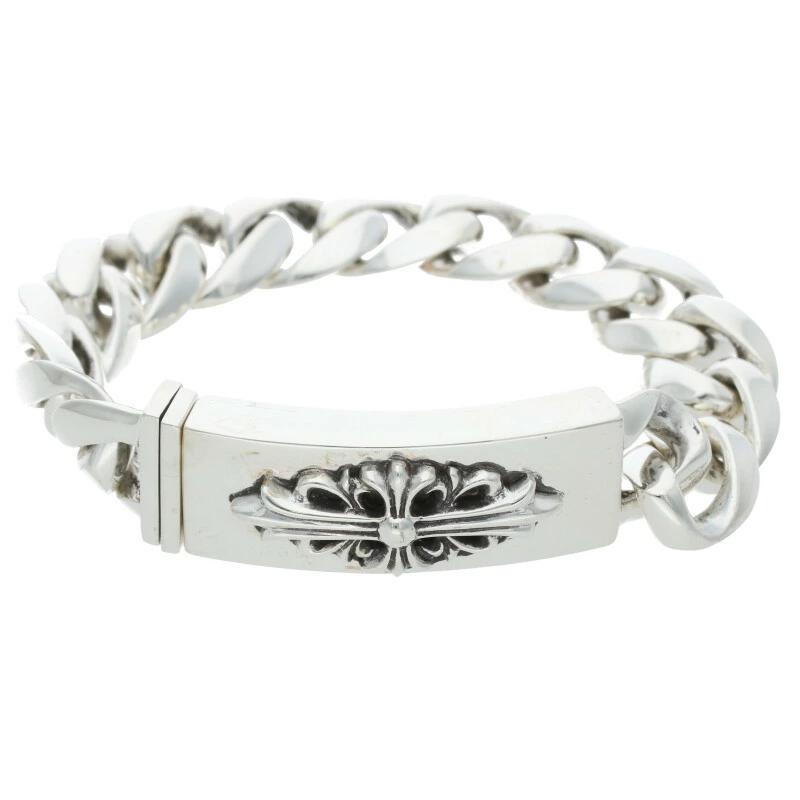 Chrome Hearts LINK ID FLORAL CRS Floral Cross ID Classic Silver Bracelet (Silver, 116.18g) Size: 13 [118052] [SS07] [Accessories] [Pre-owned] bb134#rinkan*B