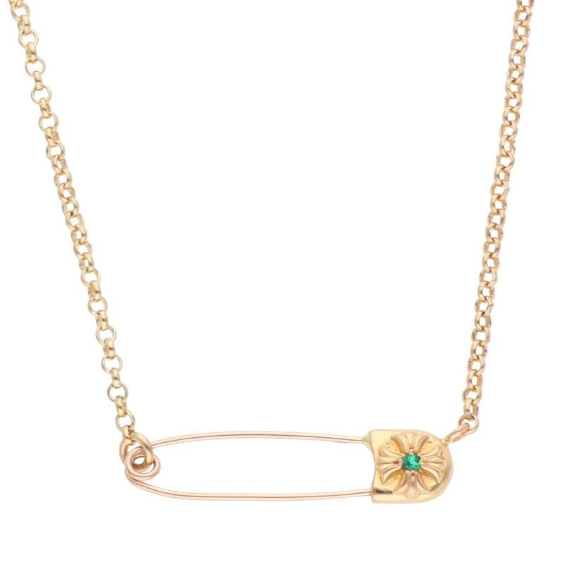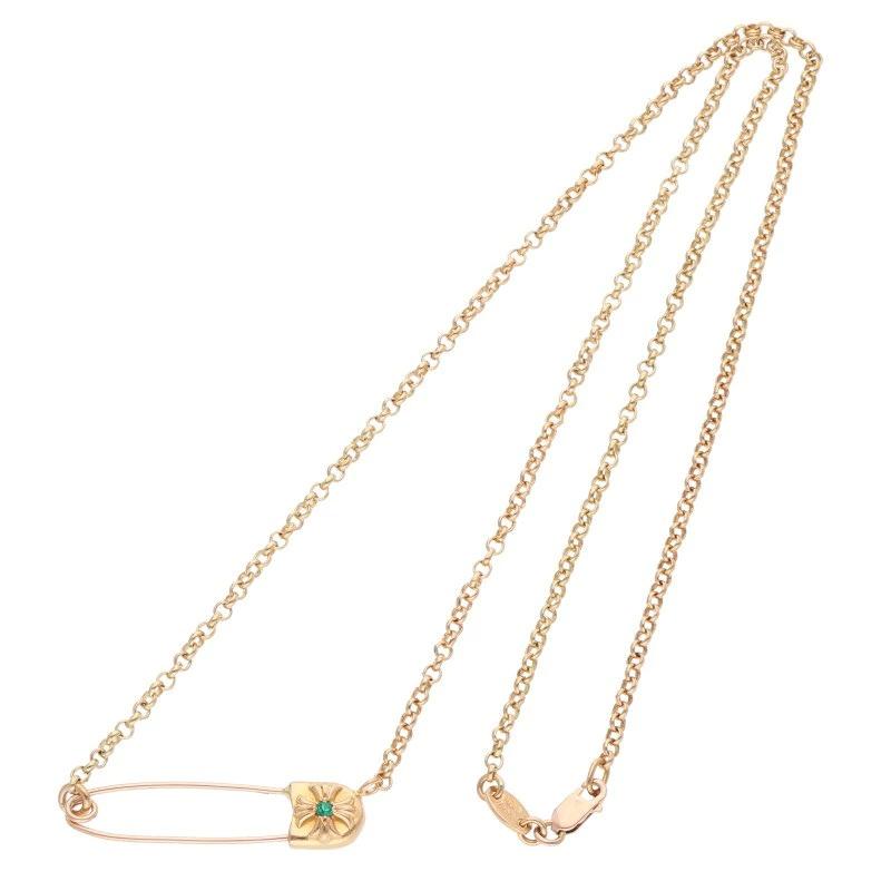 Chrome Hearts 22K Safety Pin R20 1 Emerald Gold Necklace (Yellow Gold and Green, 11.9g) Size: 20 inches, Size: 20 inches, Size: 521152 ...