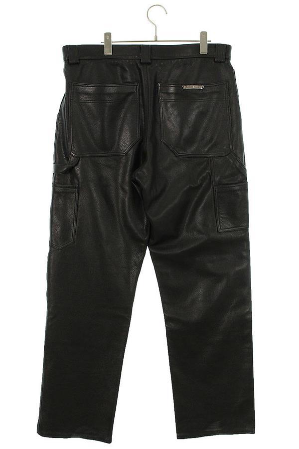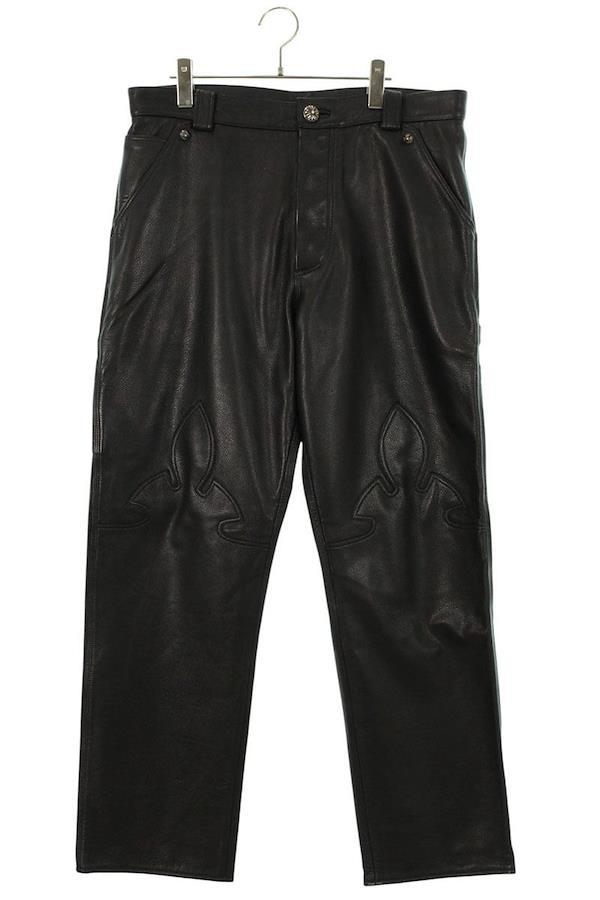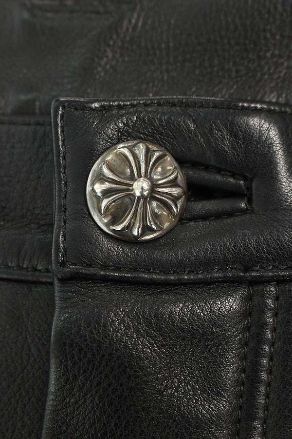 Chrome Hearts CARPENTER LTHR Cross Ball Button Flare Knee Carpenter Leather Long Pants (Black and Silver) Size: 34" [501062] [SS07] [Men's] [Pre-owned] bb428#rinkan*B