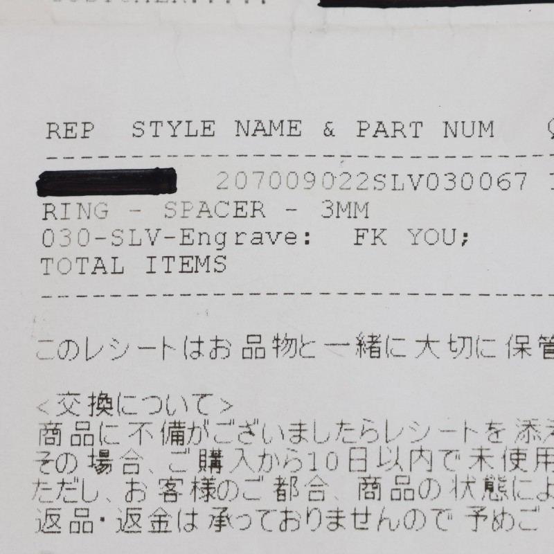 - シルバー製品は保管時に薄いスレ・くすみ・黒ずみが付くことがございます。またその他の商品にも薄いスレが付くことがございます。(特にレザー商品)