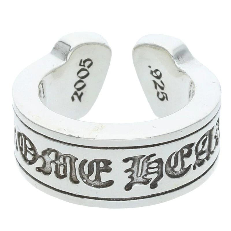 Chrome Hearts LG SCROLL LABEL Silver Ring (Silver, 14.17g), Size 9.5, Size 033052, SJ02, Pre-owned, bb17#rinkan*B
