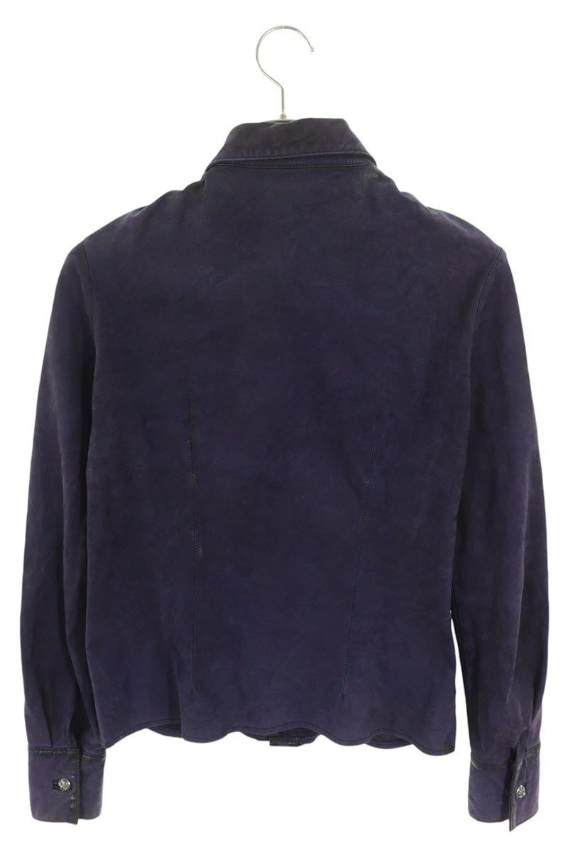 Chrome Hearts Cross Ball Button Leather Long Sleeve Shirt (Navy x Silver) Size: M [517052] [SJ02] [Women's] [Pre-owned] bb412#rinkan*B