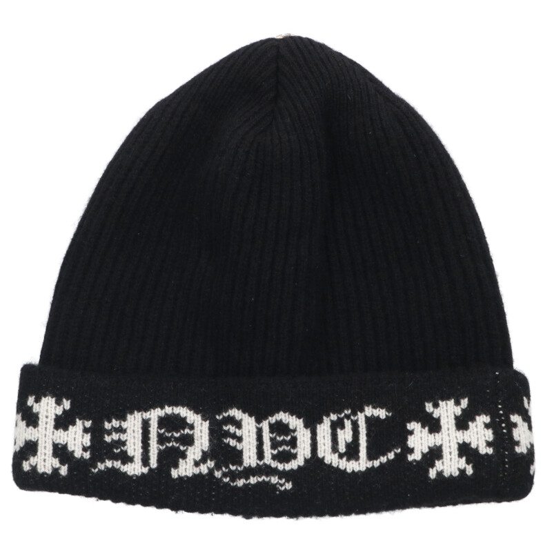 Chrome Hearts <br>Size: ONE SIZE BIG DADDY Cross Button CH Plus Embroidered Cashmere Knit Hat (Black x White) [724062] [FK04] [Accessories] [Used] bb134#rinkan*B