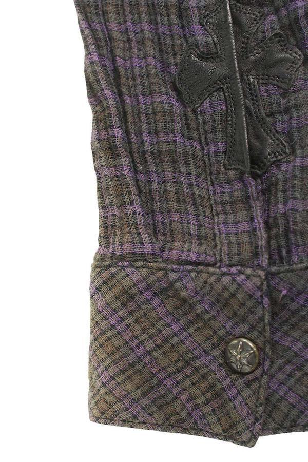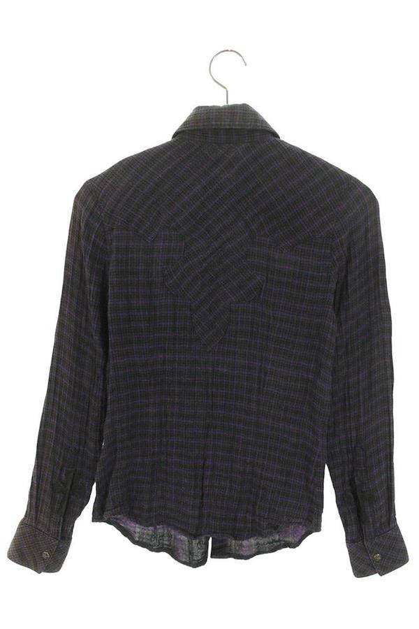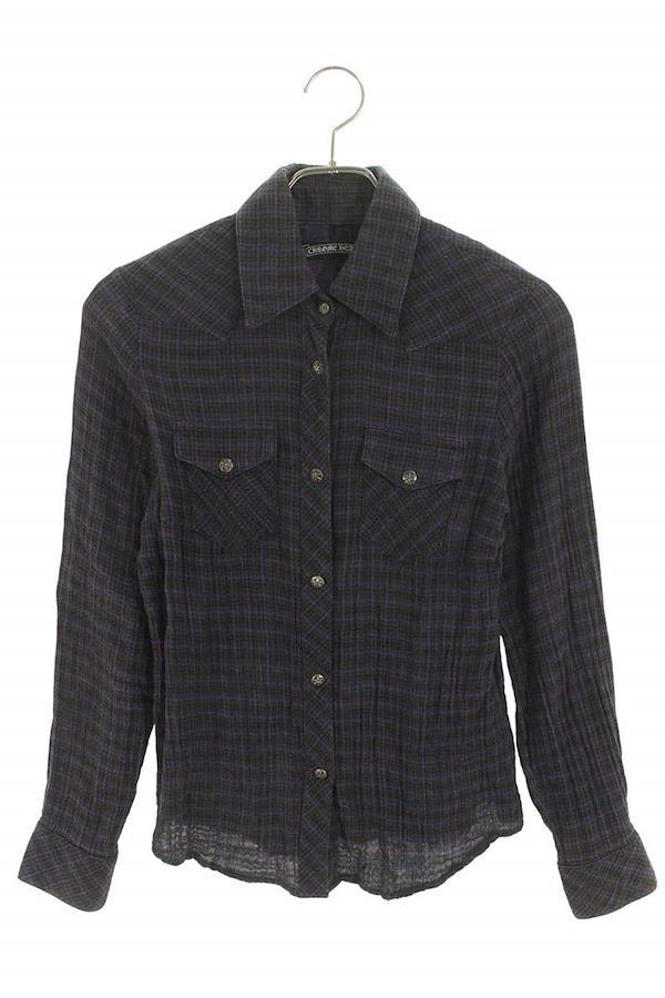 Chrome Hearts WESTN Western Dagger Zip Flare Neck Star Button Flare Neck Western Gauze Check Long Sleeve Shirt (Purple) Size: XS [721152] [SS07] [Women's] [Pre-owned] bb411#rinkan*C