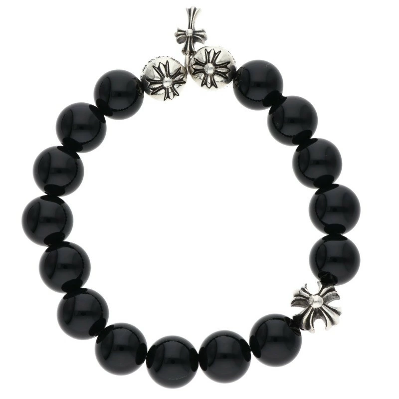 Chrome Hearts 10mm BEAD 10mm Bead Bracelet BEAD10mm Black Tourmaline Bead Bracelet (Black x Silver, Total Weight 34.78g) [224062] [SS07] [Accessories] [Used] bb406#rinkan*B